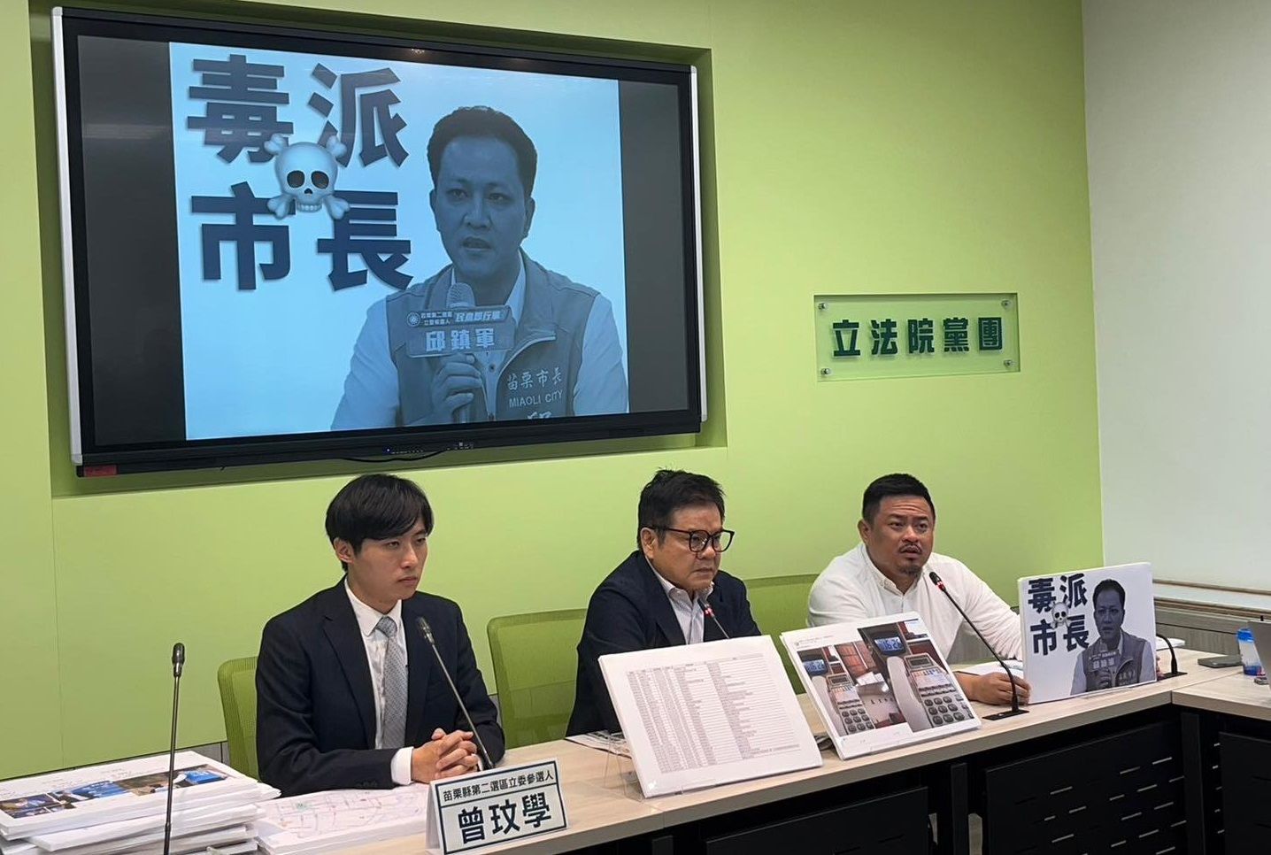 國民黨苗栗縣第2選區立委參選人、現任苗栗市長邱鎮軍被媒體爆是涉及多起賭博、毒品交易的「阿帕契電子遊藝場」大房東,其競爭對手曾玟學今(13日)也召開記者會,嗆邱是「毒派市長」,邱陣營則指曾惡意抹黑、扭曲事實,並對其提告。對此,曾玟學表示自己不怕訴訟恐嚇,接下來會逐一公布新的線索和資料,揚言會槓到底。