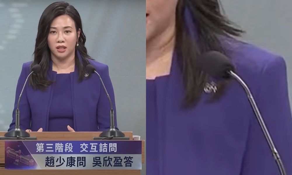 民眾黨副總統候選人吳欣盈1日身穿紫色套裝出席副總統候選人電視辯論會,不過卻有眼尖網友發現吳欣盈領口旁的KP徽章全程戴反,笑問是不是在暗示逆轉勝,對於表現未受觀眾賞識,今(2日)受訪時吳欣盈仍相當有自信,認為自己有回答到所有的問題是第一名,也指趙少康稱若當選官邸要捐做公共住宅不實際,並稱對方為「趙叔叔」,讓一旁的柯文哲嚇壞,瞪大眼睛複述「趙叔叔?」