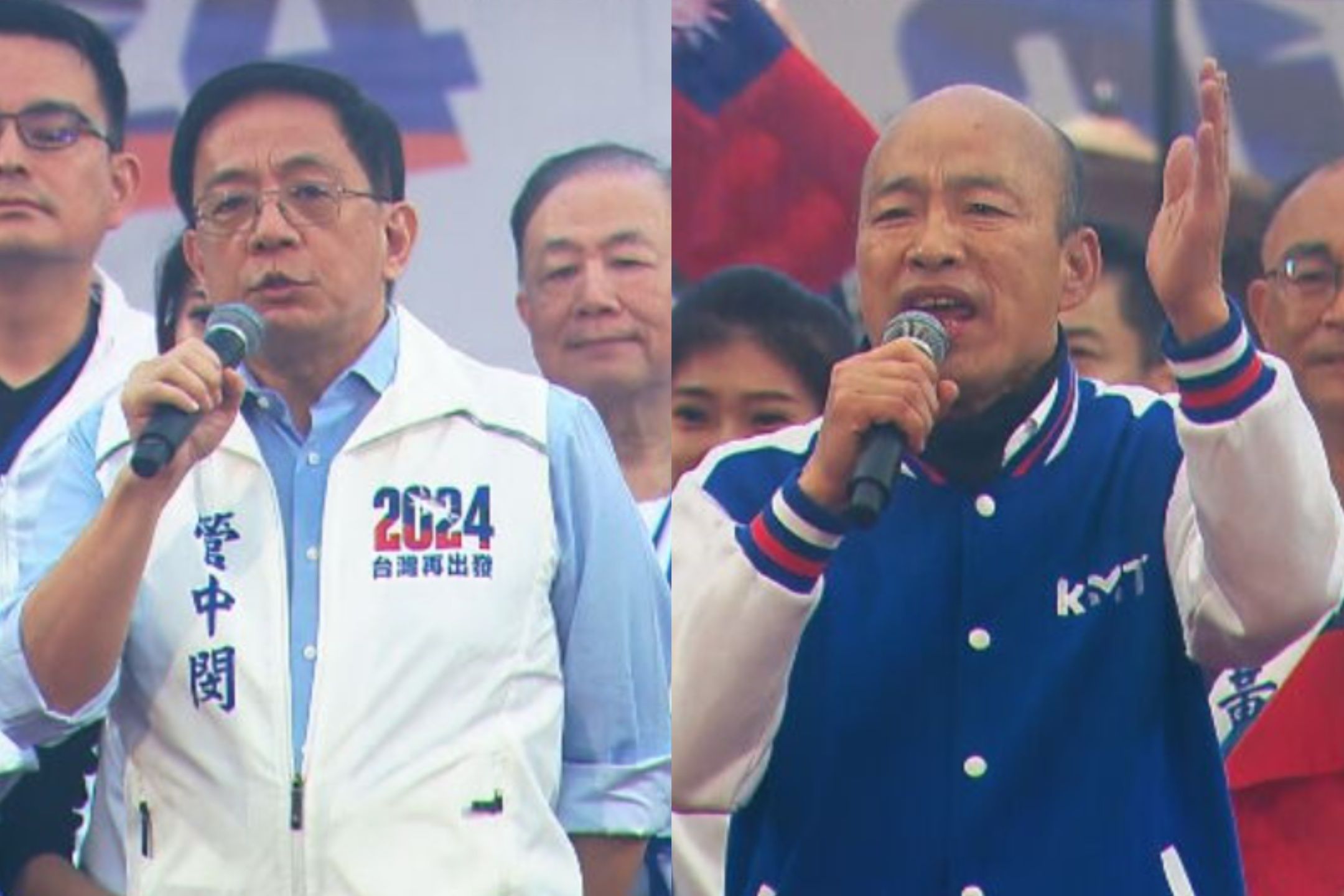 2024總統大選進入衝刺階段,國民黨總統候選人侯友宜今(7日)下午在高雄市前鎮區時代大道舉辦萬人造勢活動,名列不分區立委第一名的高雄市前市長韓國瑜現身站台,致詞時他提到台大前校長管中閔也來力挺讓他好感動,並稱管中閔是「大姑娘進洞房第一次站台」;管中閔致詞時表示,這是他第一次為政黨站台,直言民進黨吃銅、吃鐵,應用選票下架它。