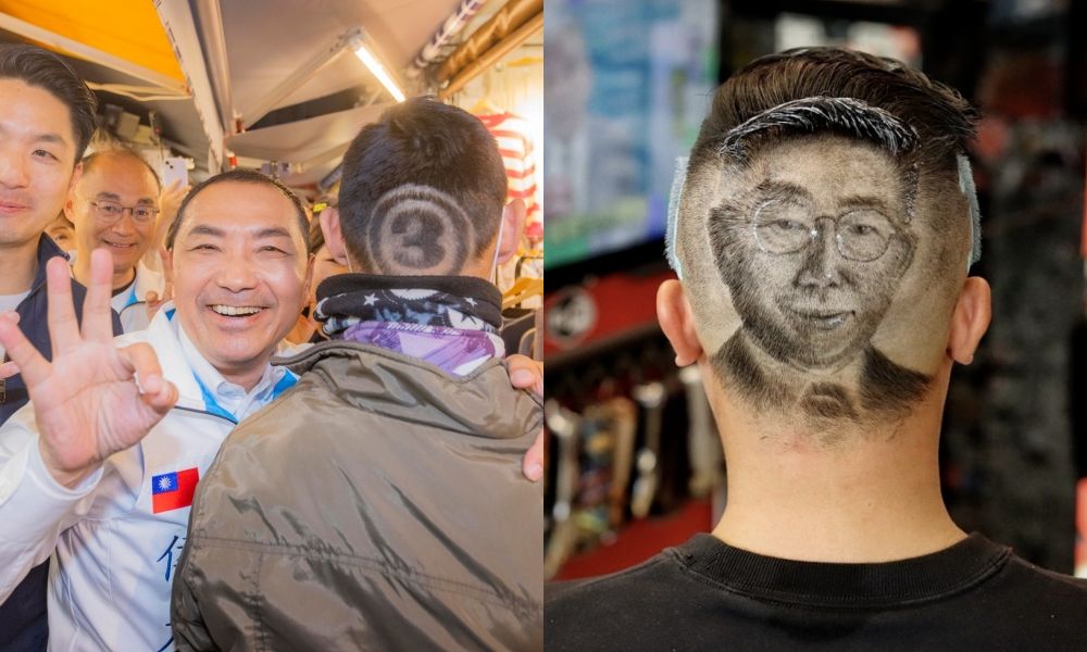 2024總統大選倒數5天,藍綠白積極造勢、車掃拜票,選民為表支持也各出奇招,近日彰化一名理髮師就分享,客人為了參加民眾黨總統候選人柯文哲的造勢晚會,在後腦勺剃上柯文哲肖像,讓他直呼「年輕人就是熱血」,而國民黨總統候選人侯友宜7日赴瑞豐夜市掃街時,也遇到熱情選民在後腦剃出「3號」標誌,讓他相當感動。不過,中央選舉委員會表示,投票當天必須遮蔽有關候選人的相關圖像,否則不僅觸法也無法入內投票。