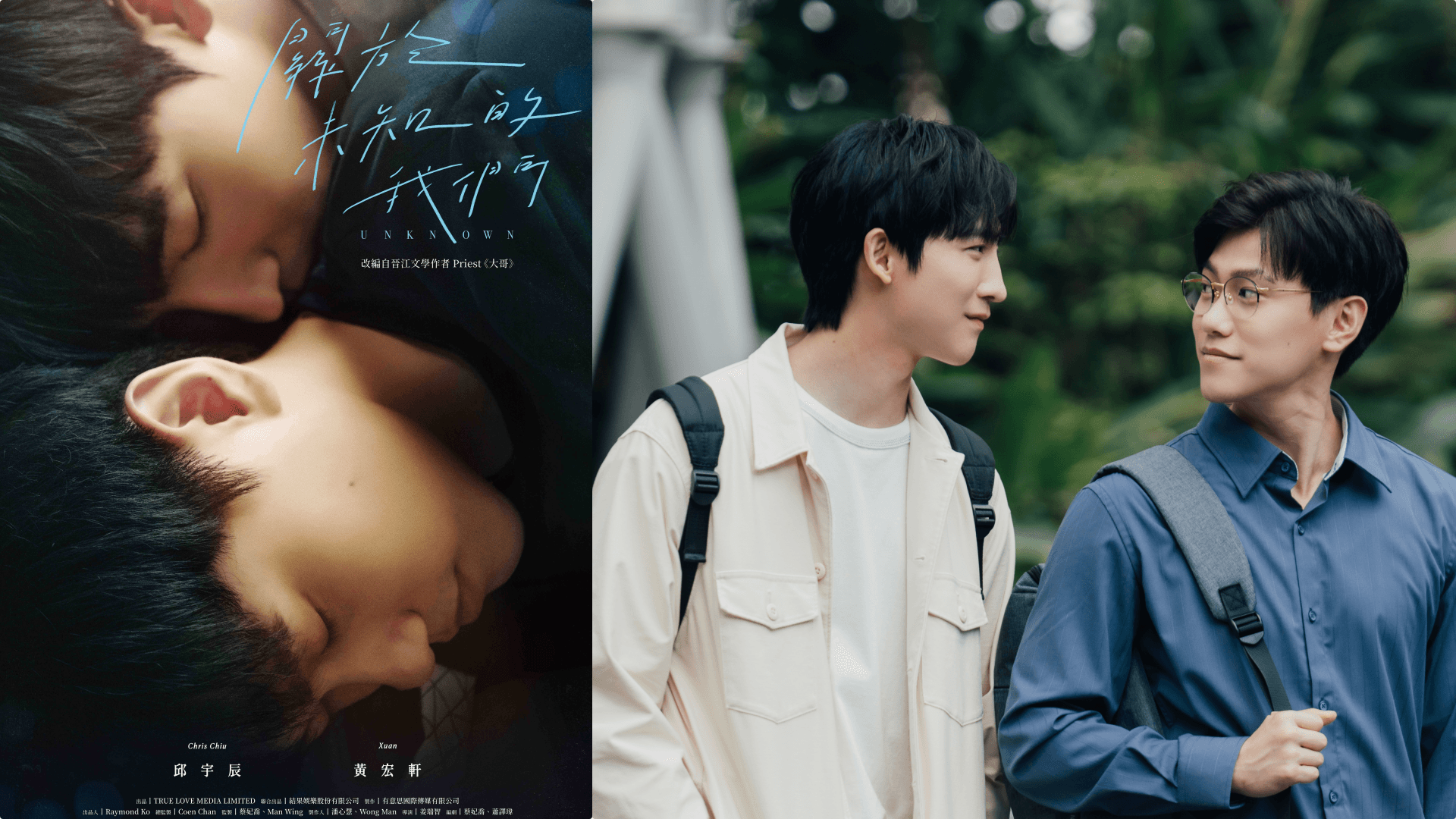 《關於未知的我們》改編自晉江文學作者Priest現代耽美小説《大哥》,劇情發展圍繞著哥哥與一手帶大的無血緣弟弟之間,令人糾結為難的情感,兩位主角由邱宇辰搭檔黃宏軒演出,戲裡兩人從幼年相遇後,歷經16年的相處與陪伴甚至分離,才終於面對自己的真心,共譜刻骨銘心的戀曲。前導海報可看見弟弟黃宏軒緊抱著哥哥邱宇辰安心入眠,兩個男人既是兄弟也是家人,但有沒有可能成為更親密的對象?全劇故事橫跨親情、愛情及生命的考驗後仍甜蜜不減。
