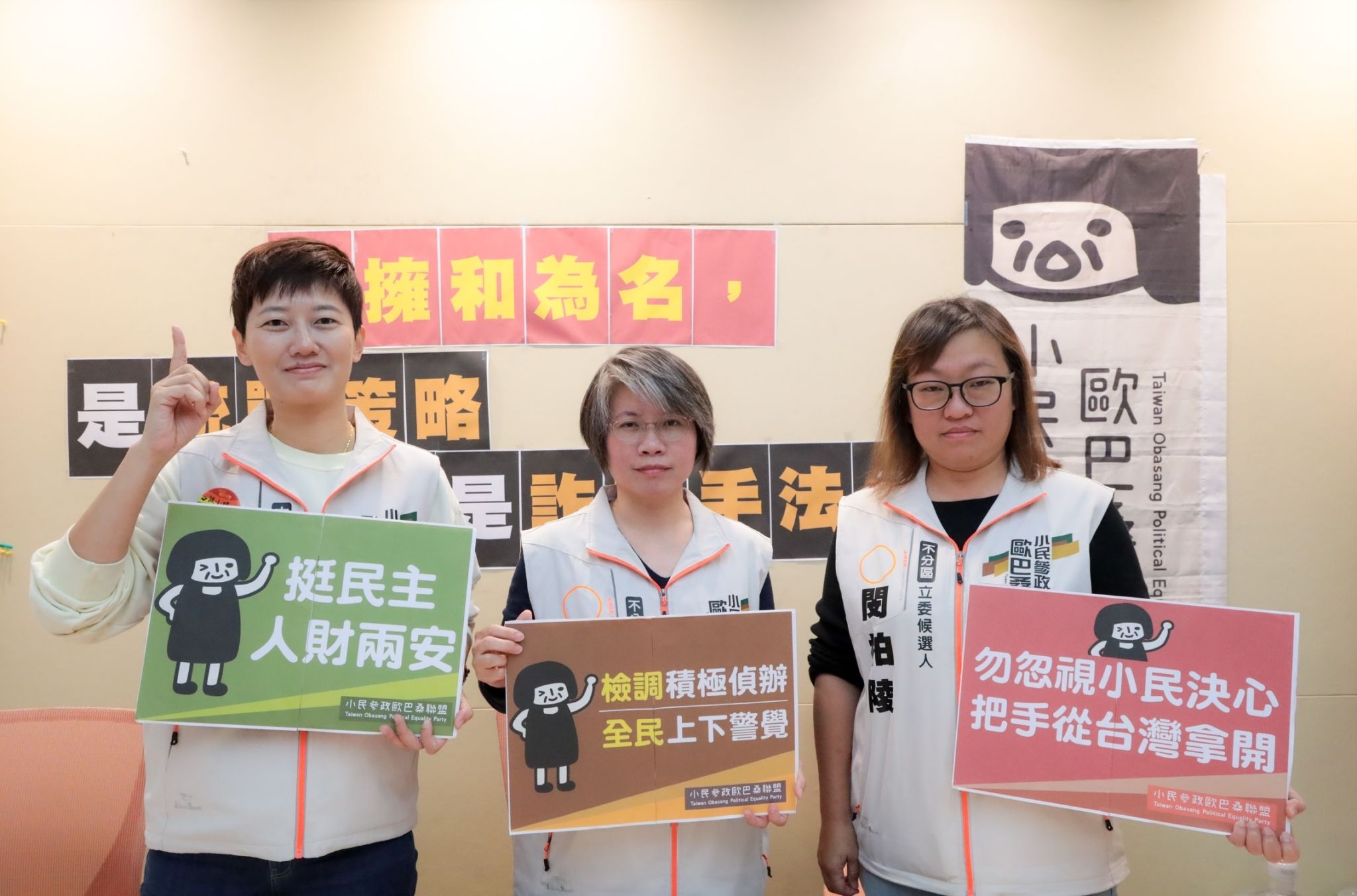 小民參政歐巴桑聯盟(以下簡稱為小歐盟)今(10日)上午在立法院舉行「來自境外以擁護和平為名的統戰策略或詐騙手法?小黨拒介選呼籲共同守衛民主」記者會。新聞稿舉出民進黨立委洪申翰近日遭遇,以及民眾黨前發言人馬治薇收受中資遭收押等事件,顯示「中國有單位試圖影響台灣選舉」的事實確實存在。