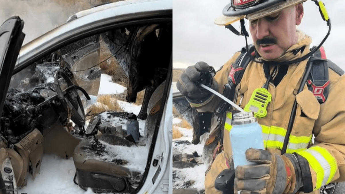 由現場影像可見,胡安的車輛前段被燒得面目全非,由於她非常喜愛的Hydro Flask淺藍色保溫杯還放在車上,胡安詢問消防員能否拿回自己的杯子,神奇的是,當消防人員將保溫杯從車上抽出、遞給胡安時,發現保溫杯竟然幾乎毫髮無傷,甚至打開杯子,裡面的水還是冰冷的,讓胡安又驚又喜。