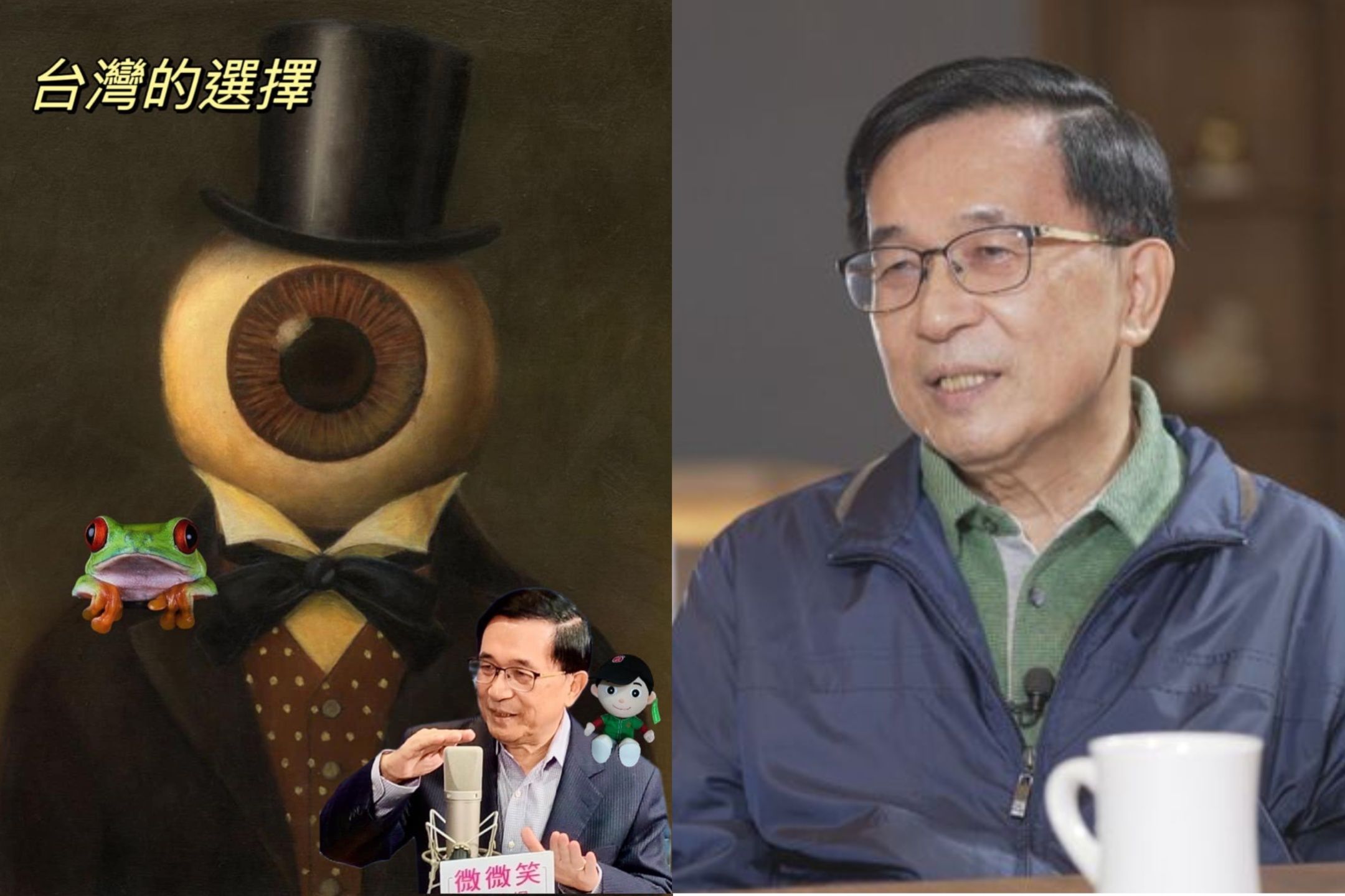 陳水扁2023年起經常在臉書、IG分享自己合成的哏圖,甚至被網友稱為「阿扁迷因圖」,今日他在社群發出一張圖,一個獨眼人穿著正裝、戴禮帽,肩膀上還有一隻青蛙,右下角則放上自己的照片,並寫下「台灣的選擇」。