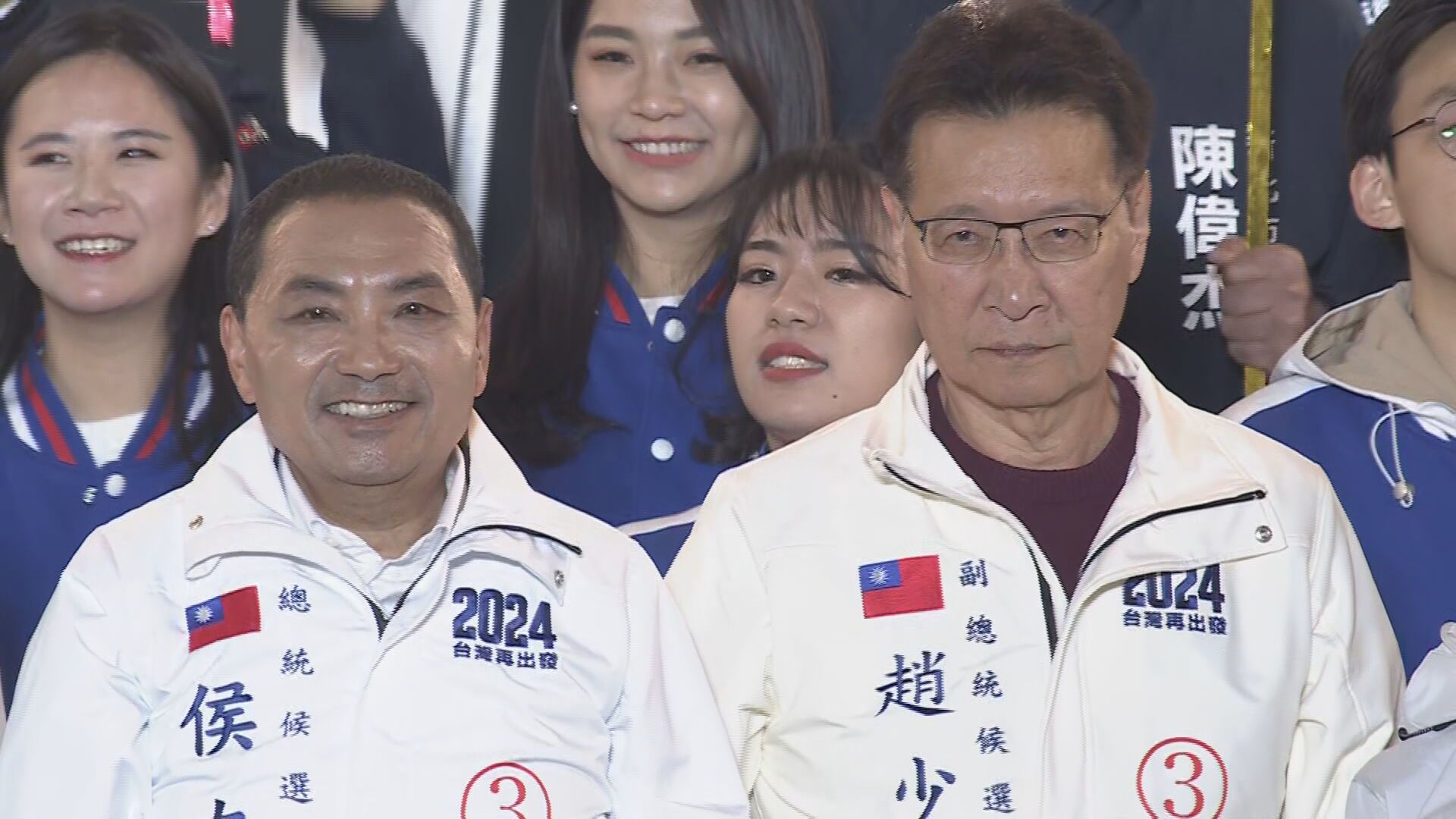 台北市長蔣萬安助講,稱民進黨用漂亮詞藻畫大餅,現在發現都是詐騙,呼籲集中選票支持侯趙;台中市長盧秀燕則問大家的新年願望是什麼?台下民眾高喊「下架民進黨」,她說輔選全國跑透透,會請教民眾的新年願望、2024怎麼過,很多人說希望不要再有詐騙,接到電話都不敢接,除了固定電話,其他電話都不接,因為詐騙太多,心願是不要有詐騙,稱過去幾年缺口罩、疫苗、蛋、水、電,希望今年中華民國可以平安,不要讓民進黨繼續執政。