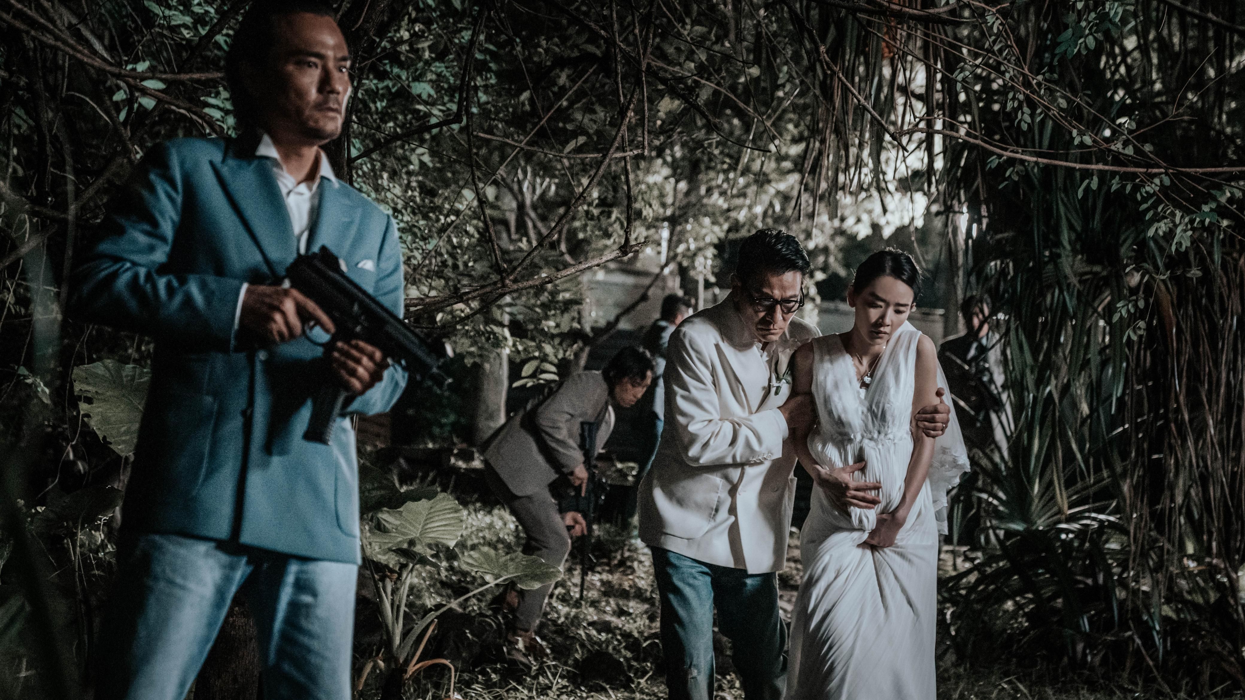 電影《潛行》中,劉德華非常疼愛妻子,兩人在馬來西亞的刀曼島舉行盛大婚宴,但因為律師不擇手段的販毒手法,得罪國際級仇家,惹來一場僱傭兵團的追殺,在婚禮上瘋狂掃攝開槍追殺他,警方也到場圍補他,引發了一場混亂刺激的槍戰。為了呈現這場浪漫婚禮,劇組花了不少人力物力搭建場面,但一轉眼,宴會便成了戰場。
