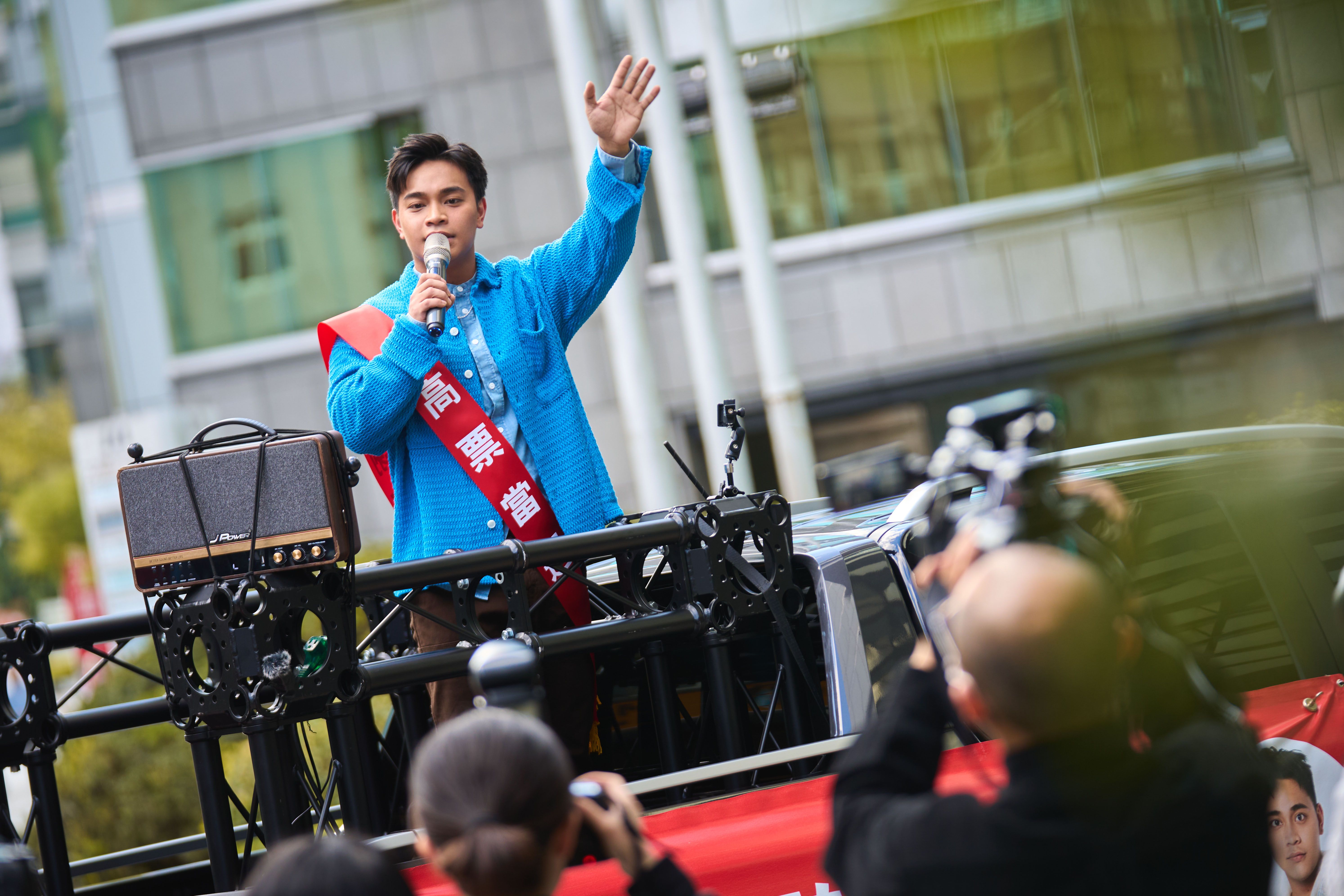 搭上總統及立委大選熱潮,歌手邱軍去年底推出前導EP《謝謝你的愛2024》獲佳績,同名單曲在KKBOX排行榜奪冠,為感謝歌迷的支持,邱軍昨舉辦謝票活動,準備了一輛精心佈置的專屬「競選車」,車身還掛著紅布條「邱軍/謝謝你的愛/銘謝賜愛」,邱軍站上「競選車」沿途掃街致謝,行經台北市各個熱鬧地區,並拿起麥克風演唱,成功吸引眾多路上民眾的目光。