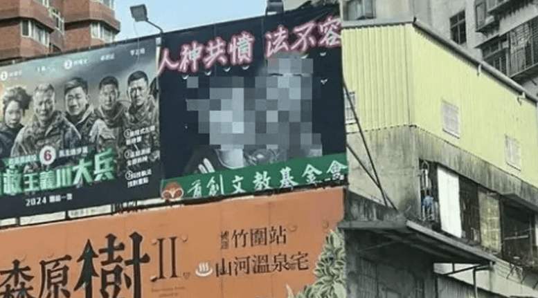 日前於新北市五股區通往八里、淡水路口的一處公寓外牆上,刊登著割頸案加害者「乾哥、乾妹」的畫像,還寫下「人神共憤,法不容」,吸引網友們朝聖,背後金主則是廣告公司董事長、錦新大樓主委周朝陽,自費1萬多元,直言要挑戰不合理的法律,且至少要掛一個月。
