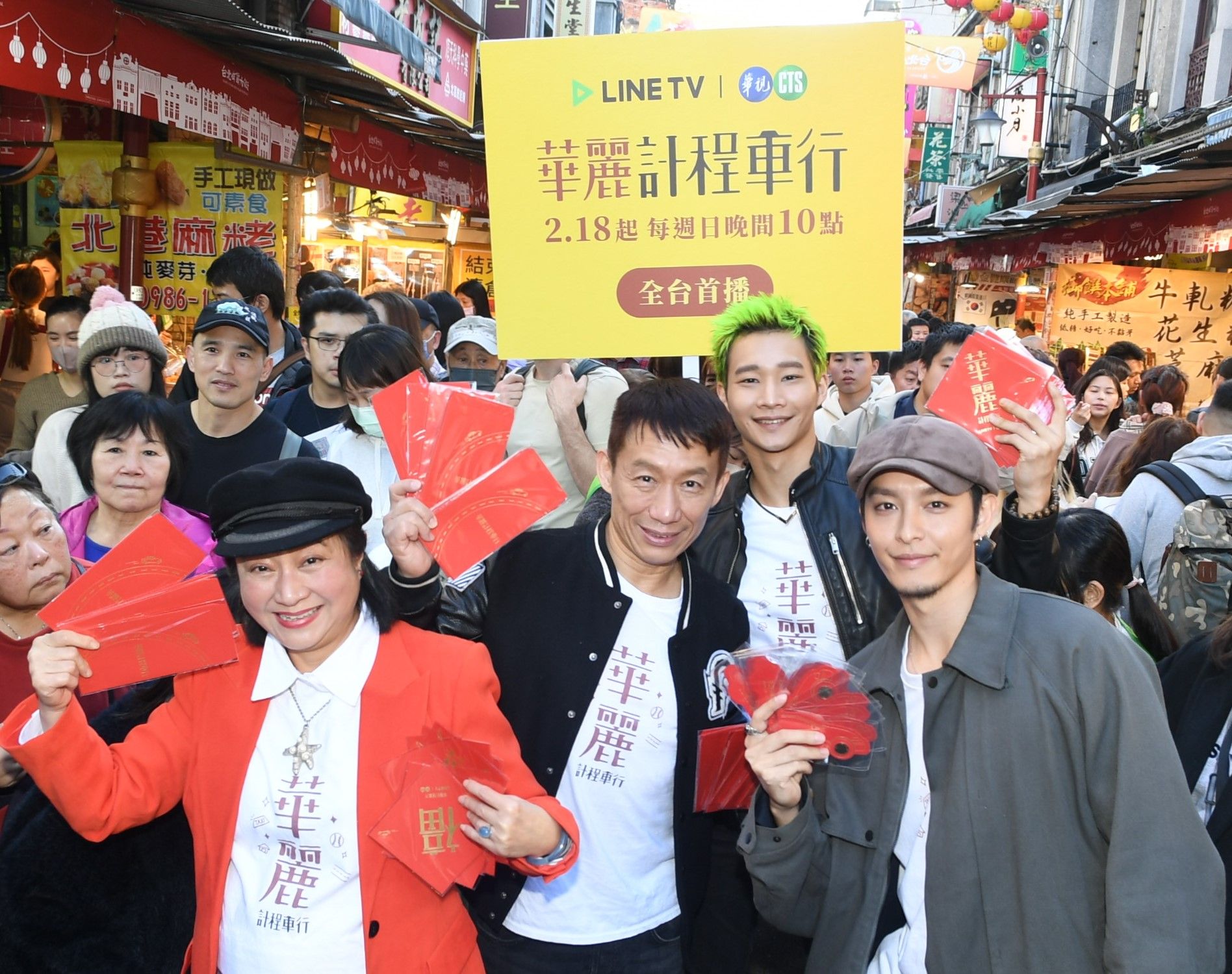 LINE TV、華視年度大戲《華麗計程車行》將於2月18日首播,主演曹佑寧、黃冠智、郭子乾、楊麗音近日到台北年貨大街宣傳,手捧蘋果、橘子、春聯斗方,祝福現場民眾平平安安、大吉大利、福氣滿門、好運龍乎你,並沿途發放為戲量身打造的紅包袋和春聯,提前向大家拜年,四人一現身就受到現場攤商與民眾熱情簇擁,不僅有「小小粉絲」到場支持,長輩粉絲也開心和演員們互動、熱情告白,短短5分鐘路程走了30分鐘才結束,讓主演們又驚又喜。