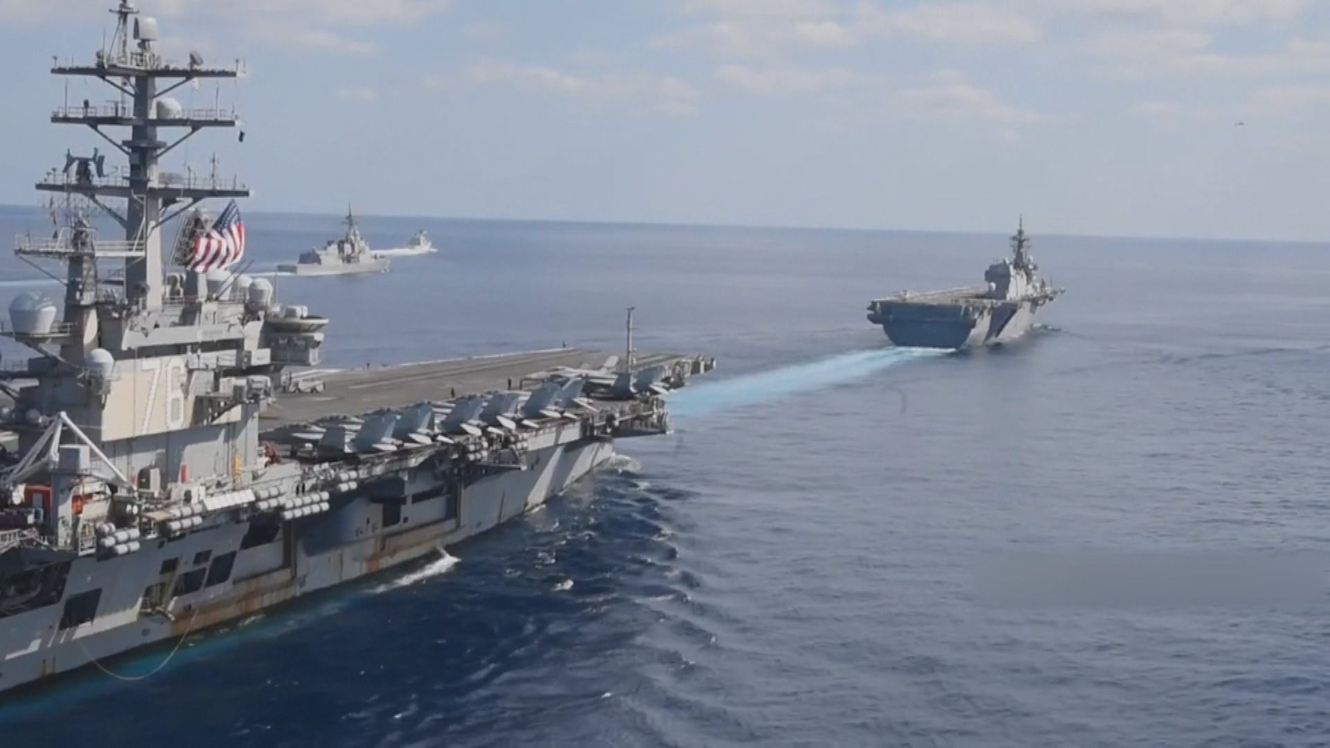 美國海軍上月31日和日本,在菲律賓海展開聯合演習,美方出動核動力航空母艦「卡爾文森號」和「羅斯福號」,協同日本海上自衛隊直升機護衛艦「伊勢號」,以及另外9艘軍艦共同執行任務。