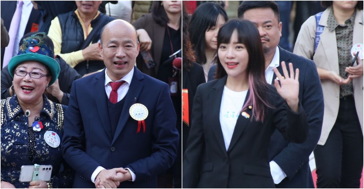 代表國民黨參選立法院長韓國瑜也現身就職紅毯,他一出現就被媒體簇擁,上一位走紅毯的立委高金素梅帶領的龐大親友團,看到韓國瑜出現也大喊「總統好」、「院長好」,可以看出人氣相當高。