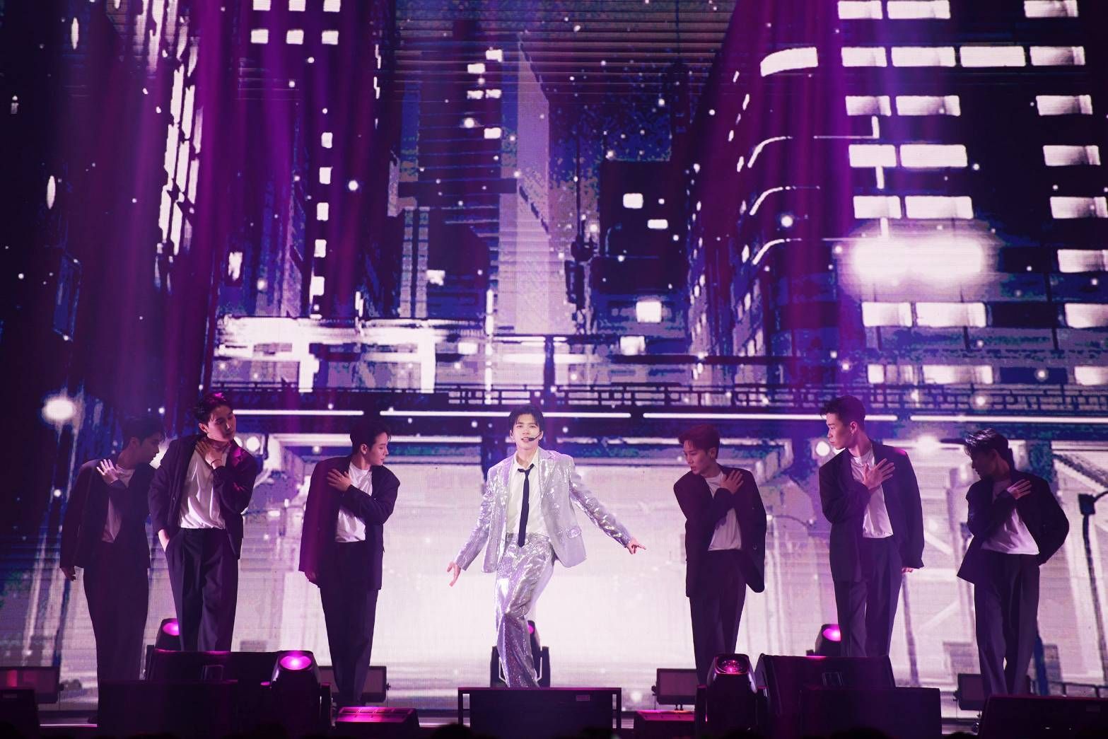 南優鉉(右)邀請邱鋒澤(左)擔任演唱會嘉賓,期待未來有合作的機會。(SHOW Office提供)演唱會接近尾聲之際,台灣歌迷特別替南優鉉提前慶生,現場播放起電音版的生日快樂歌,由工作人員推出蛋糕並送上氣球花束,回過神後的南優鉉表示:「我以為這是什麼夜店的歌,第一次聽到,還有點驚慌,真的是太突然了。」看到台下舉起祝賀他「33個月」生日的手幅,南優鉉則打趣說:「我像小孩嗎?你們才像小孩,很想抱抱你們。」