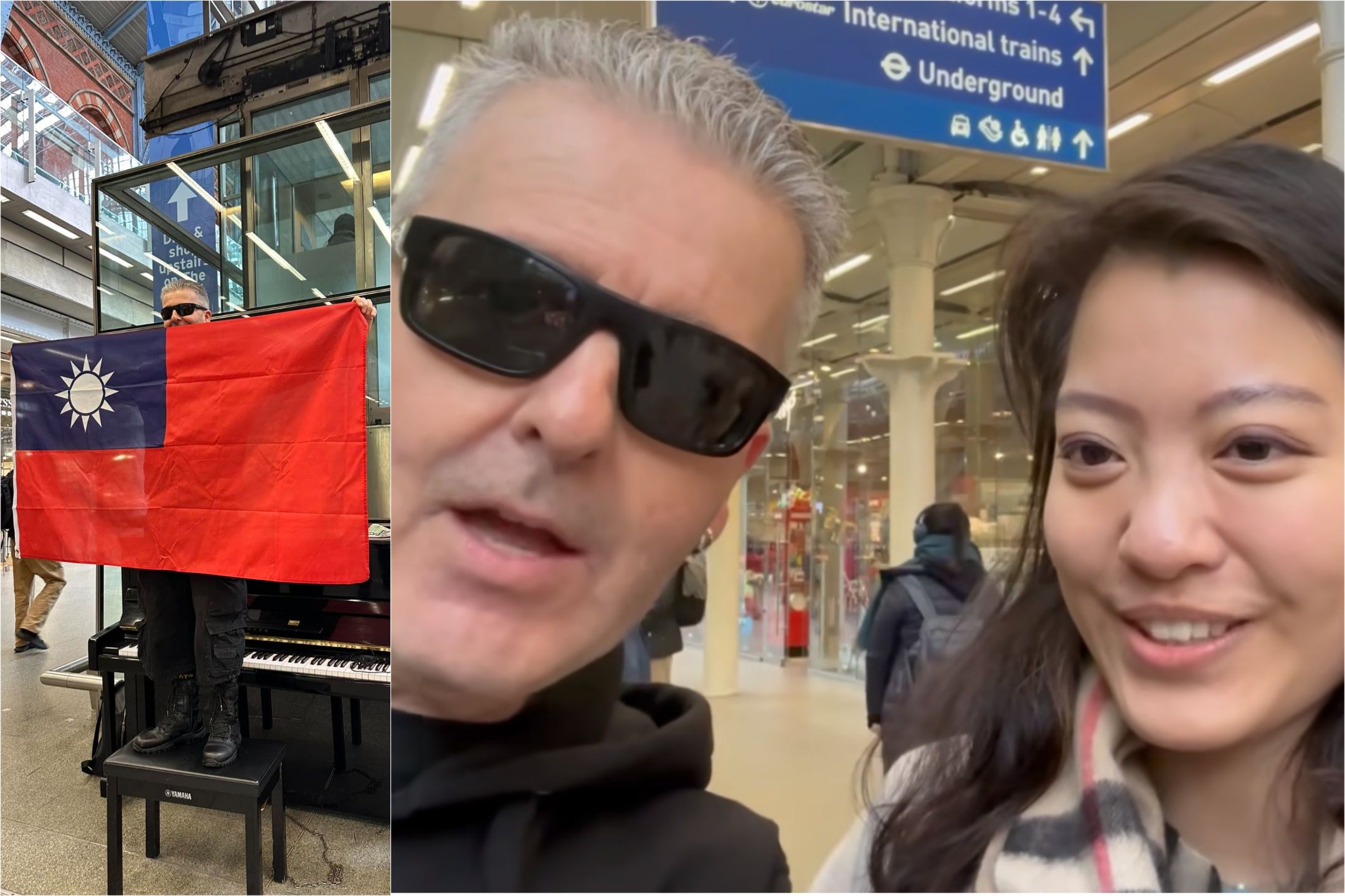 英國鋼琴家卡瓦納(Brendan Kavanagh)上月在倫敦車站直播演奏時,遭一群中國小粉紅拿五星旗鬧場,雙方發生爭執,此事件也因此登上媒體。卡瓦納昨(5日)在臉書PO出手拿中華民國國旗照片,還分享一段與台灣女子學說「台灣加油」中文、台語的影片,引發台灣網友關注,而民進黨立委林俊憲也透露畫面中女子是他的前助理,證實是台灣人。