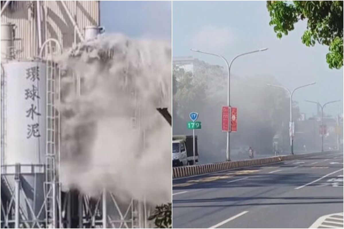 環球水泥台南廠,今天(22日)下午3點多發生水泥槽管線破裂意外,大量水泥灰外洩,民眾直擊現場超傻眼,趕緊拿起手機拍下瞬間。