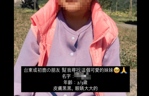 據悉,女童於21日凌晨失蹤,當天有一名陳姓網友幫忙代PO協尋貼文,並提供女童名字、特徵,以及失蹤身穿的衣服顏色,希望台東或初鹿的民眾能幫忙留意。