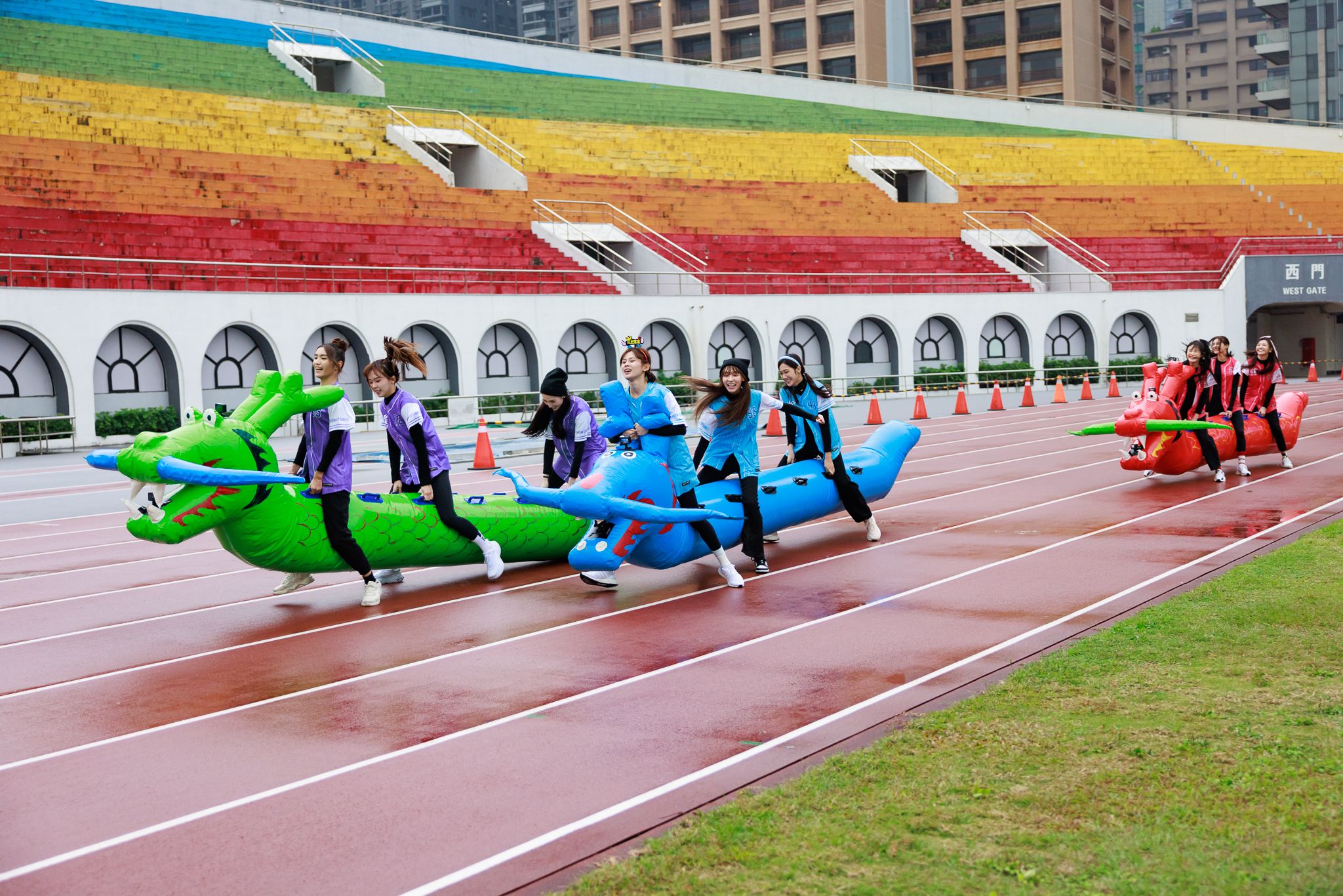 看似逗趣的陸上龍舟,相當考驗女孩的體力與意志力,在競賽過程中大家不斷大喊「超累的」、「我不行了」,幾乎快喪失鬥志,紅隊隊長吳心緹不僅累到不行,更氣得直呼:「這比賽到底是誰發明的,比平常還要炸裂!」第二個項目「木頭人」,由總召集人錢薇娟擔任「鬼」的角色,要保持手中的托盤與水杯平衡,難度大幅提升。
