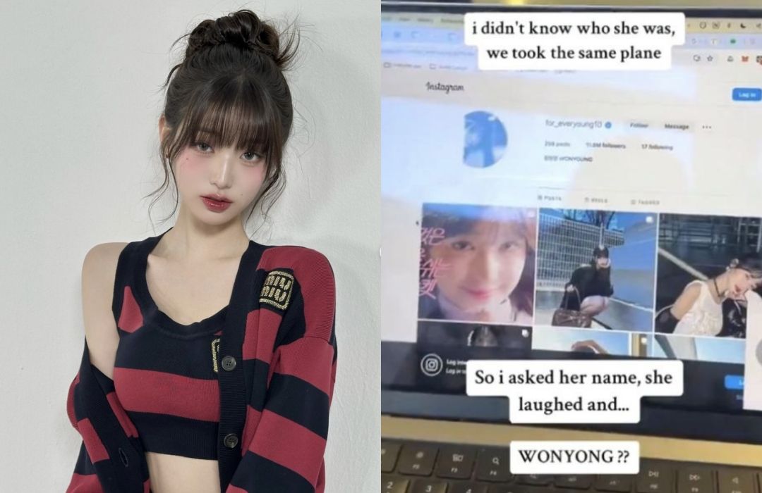 昨(5日)張員瑛在前往法國巴黎參加時裝週的路上,登機前在候機室被一票粉絲包圍合影,旁邊一名跟張員瑛搭同班機的旅客見狀,因自己認不出對方感到十分好奇,便大膽上前詢問張員瑛她的名字,沒想到,張員瑛就大方的在這名旅客的電腦上,輸入自己擁有1164萬名粉絲的IG帳號,讓該名旅客相當驚訝,並拍了一則小短片驚呼「WONYOUNG?」(員瑛?)