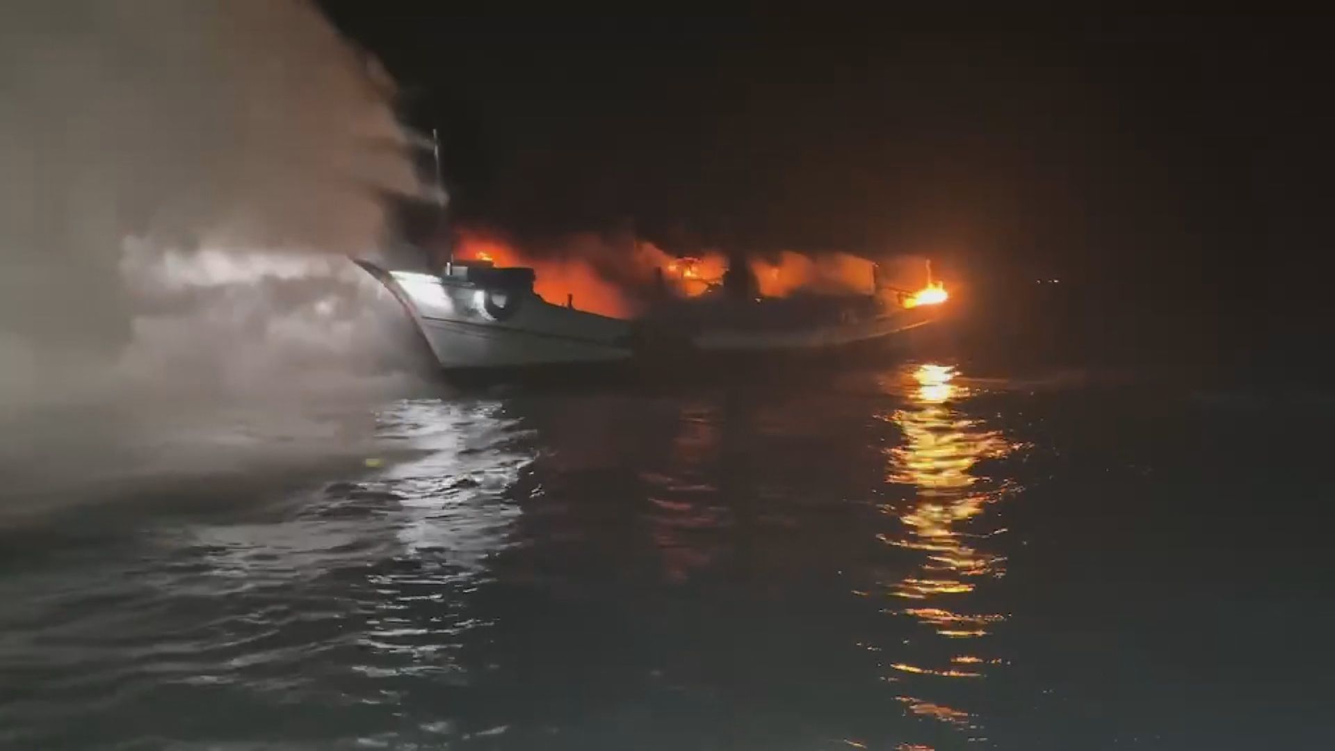昨(5日)晚間將近8點,一艘澎湖籍的「全振宏」漁船,在虎井海域不明原因起火,5名船員見火勢無法撲滅,只好當場棄船跳海逃生,好在路過友船協助將5人救起來,海巡人員獲報後,迅速趕抵現場,順利將火勢撲滅。