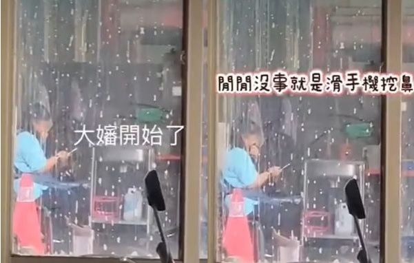 高雄楠梓一間鹹酥雞攤店員,趁著沒客人的時候,坐在一旁滑著手機,另一隻手卻不斷在鼻孔裡挖阿挖,直到有客人上門後,這名店員卻疑似沒洗手,就開始準備餐點,而這一幕都被民眾給拍下。