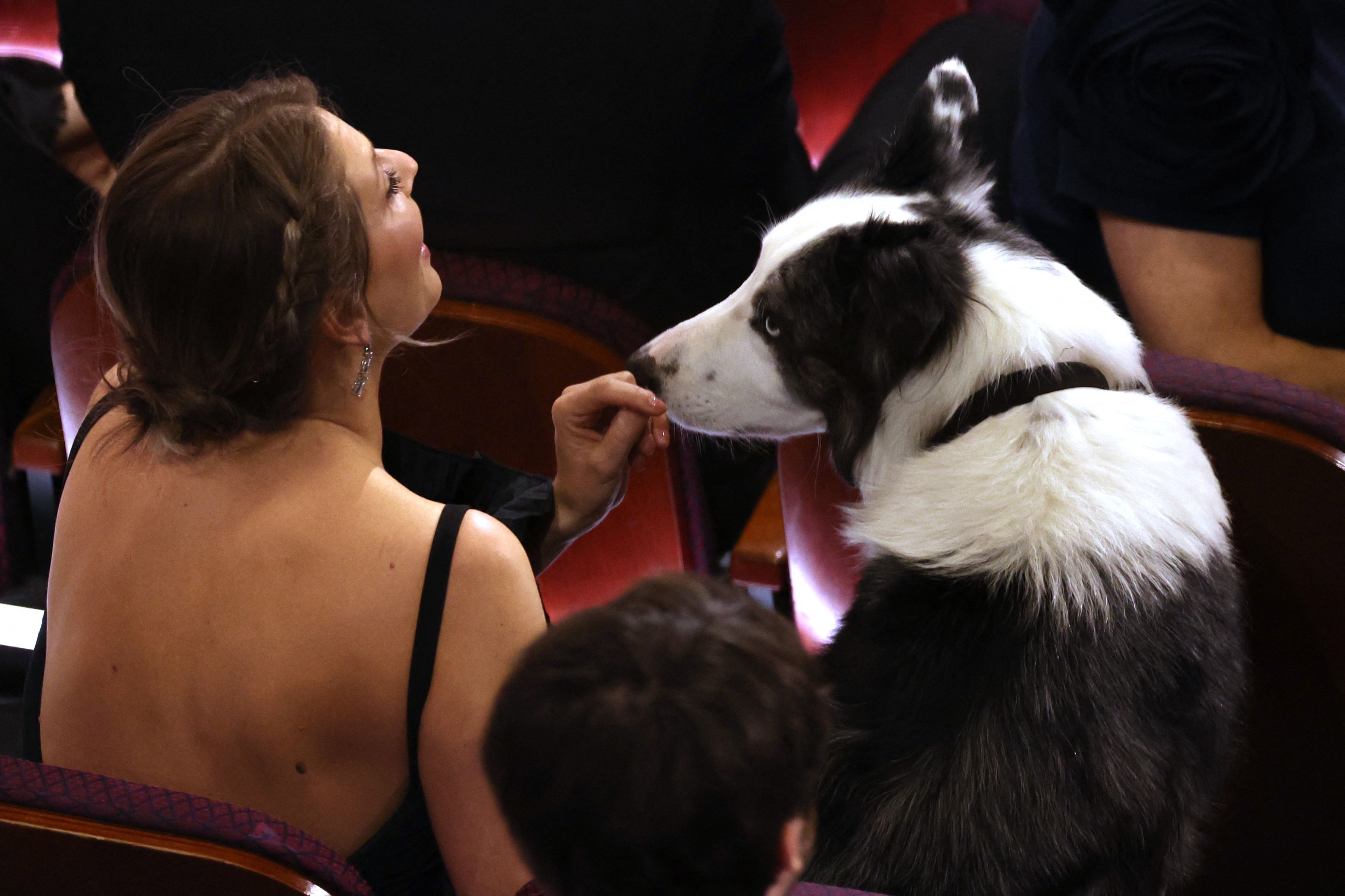 沒想到Messi依然成功搶得入場資格,在奧斯卡頒獎典禮取得座位,主持人還特地點名牠,被巨星們圍繞的這隻邊境牧羊犬其實非常乖巧,時而好奇地環顧四周,當然也獲得不少鏡頭,還有鏡頭拍到有工作人員以假狗掌幫牠為得獎者拍手祝賀。