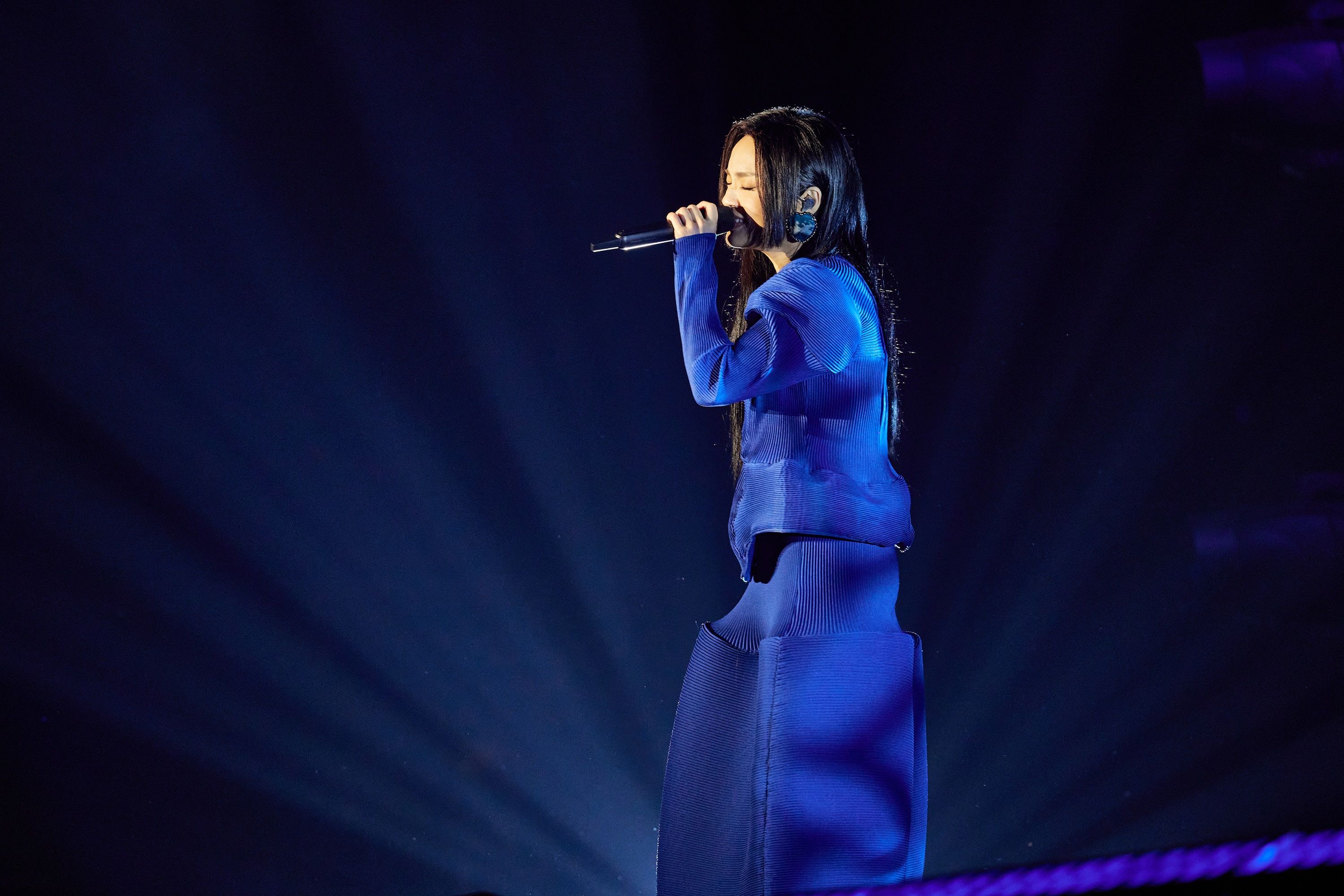 為了工作而必須離家多日的她,還拿著兒子的玩具照明燈在舞台上與全場觀眾合照,笑說要把照片給兒子看,因為兒子不能理解為什麼媽媽要離開家這麼久,「我告訴他,媽媽要去做一件很重要的事,跟很重要的人見面。所以我希望大家跟這個玩具合照一張,讓他知道媽媽帶著他的信物去找媽媽喜歡的們。」