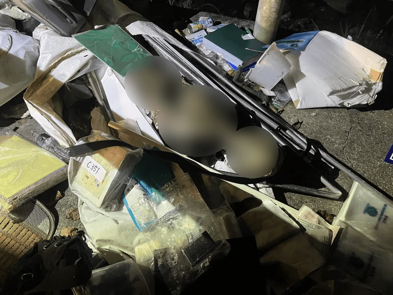 虛驚好大一場!昨(12日)傍晚,有民眾帶著一家大小前往三峽成福山區賞螢,卻在路邊發現狀態慘烈的「全裸溶屍」,一旁還有封鎖線,嚇得連忙報警,三峽警方不敢大意,立刻組成專案小組應對,現場拾獲「平霖市警局」刑案卷宗、證物袋,喜愛推理劇的鑑識巡官陳偉曦看到立刻聯想到台劇《誰是被害者》,仔細觀察,駭人的溶屍並未發出惡臭,關節處還有螺絲,原來這些都是被拋棄的道具。