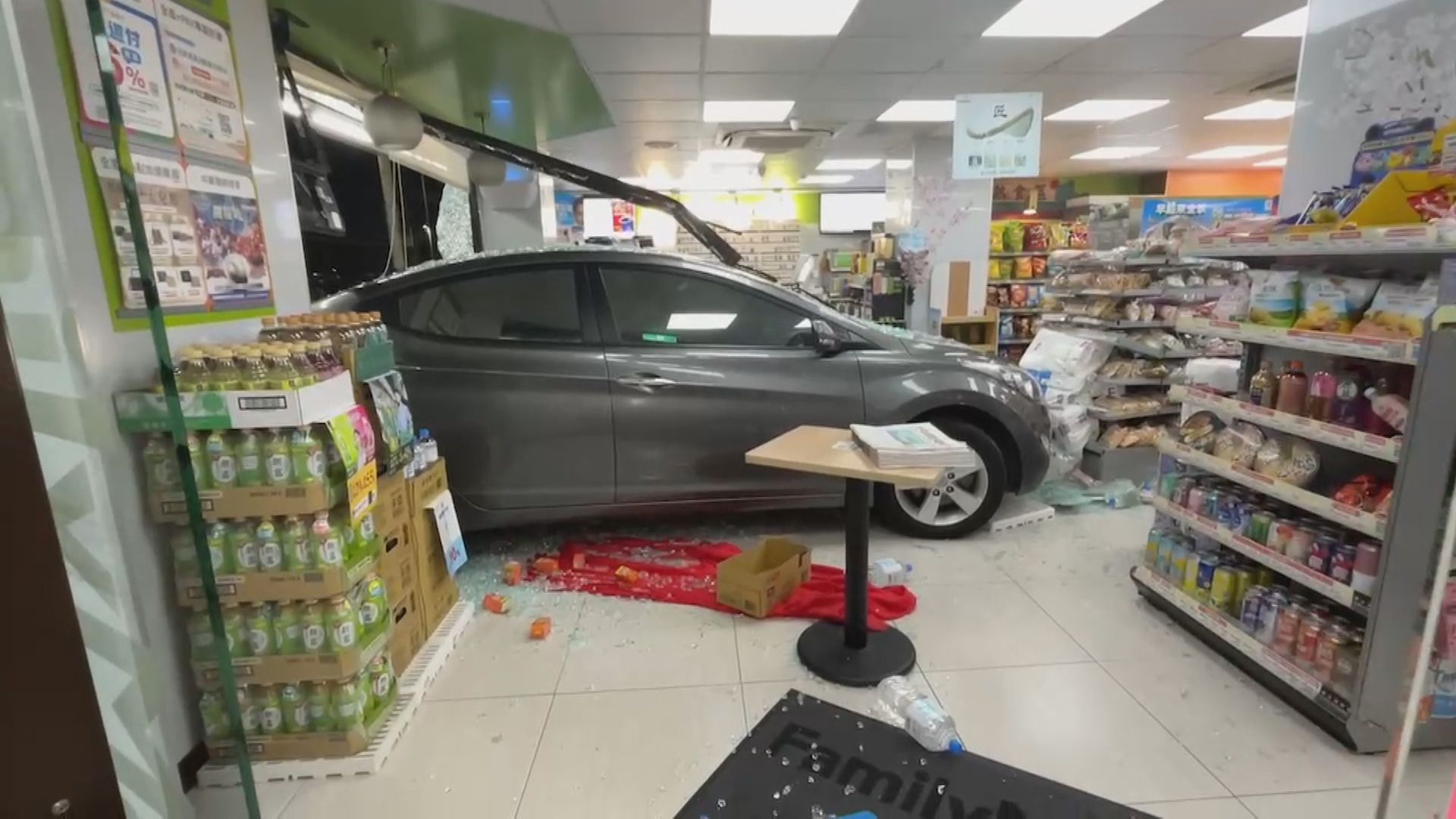 離譜車禍發生在18日凌晨3點多,一名22歲的劉姓男子開車行經新北市林口區林口路,正當駕駛要迴轉時,疑似誤將油門當作煞車,才會直接撞進便利商店,超商大門的玻璃被撞出一個大洞,滿地都是玻璃碎片,店內貨架上的商品也被撞倒。
