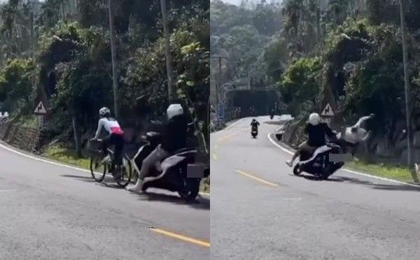 這起意外為17日中午12時46分,陳男無照騎乘機車沿台3線往中埔方向行駛,行經阿婆灣附近時,從後方高速追撞騎乘公路車緩慢爬坡的謝女,謝女被撞飛,事發當下臉部都是血,陳男則是全身多處擦傷,所幸2人送醫後均無生命危險。