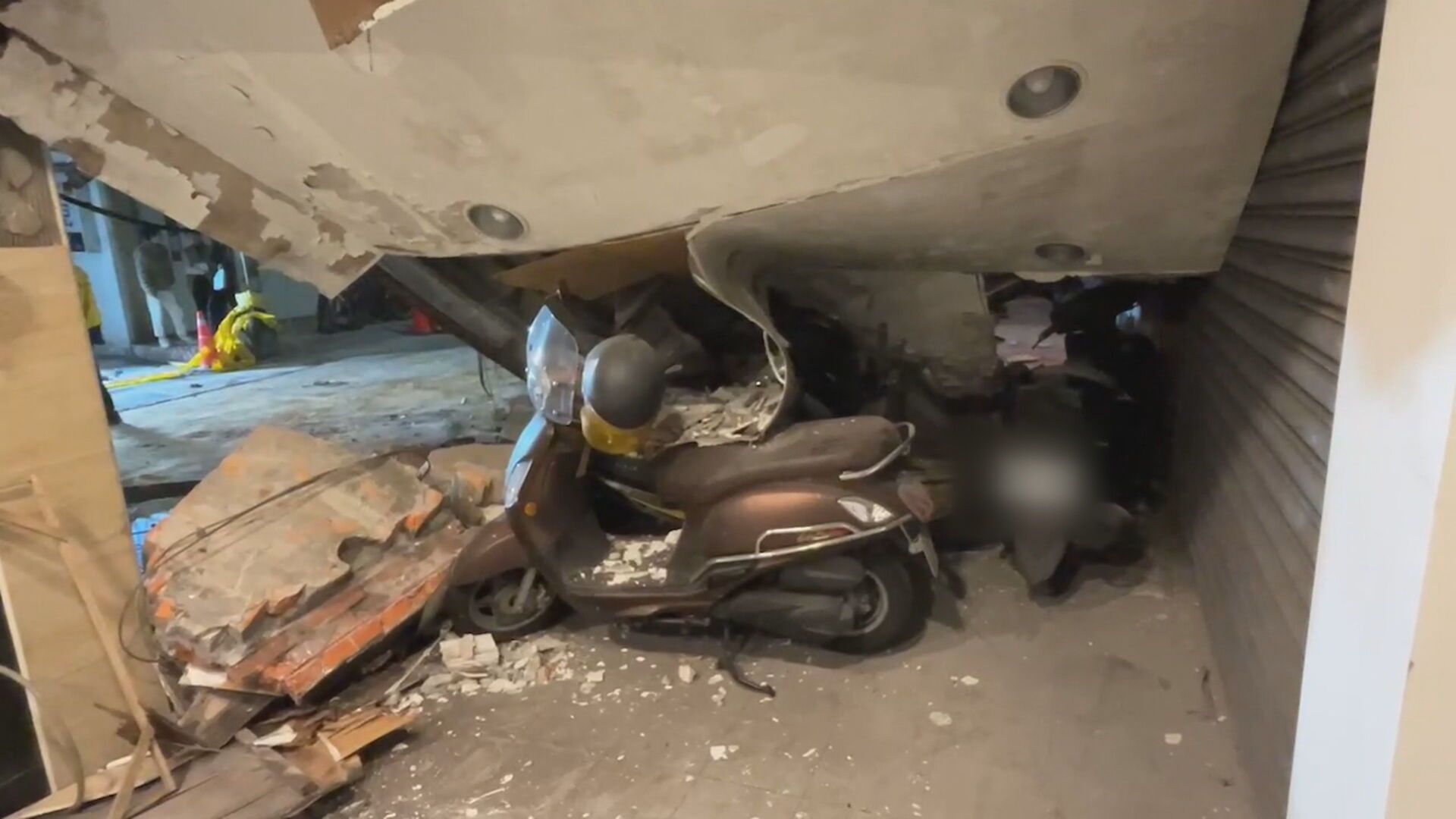 深夜這棟2層樓建築物,2樓地板整個塌陷,外牆也剝落,地上全是房屋的殘骸,以及裸露的電線,垮下的磚瓦還直接壓到騎樓機車,但這並不是地震造成,而是因為房屋太過老舊。台北市工程處副處長王金棠指出,這棟建築物民國56年建成,目前沒有人住。