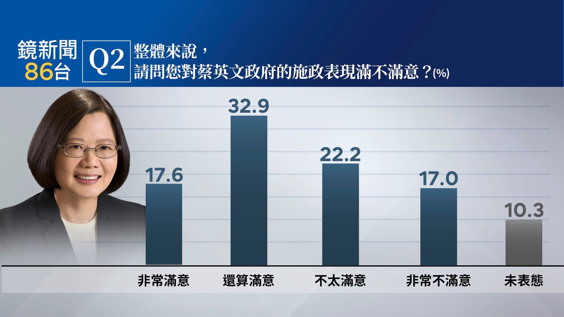 小英總統施政評價50.5%滿意 39.2%不滿意
