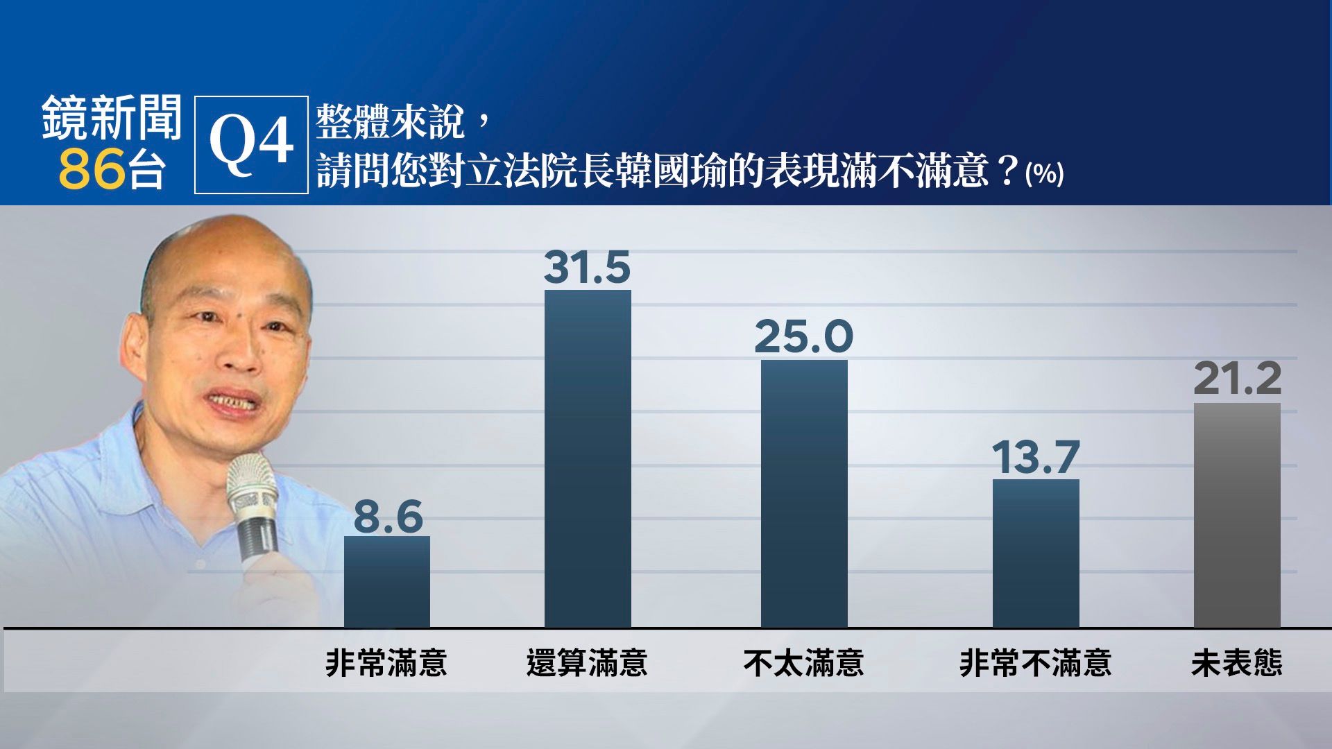 甫爆質詢權爭議 新國會龍頭韓國瑜表現40.1%滿意 38.7%不滿意