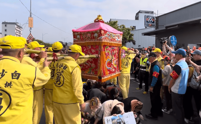 22歲劉姓男子13日在苗栗縣鯉魚潭水庫清淤,疑不慎落水失蹤,至今下落不明,家屬今(20日)帶著劉男衣服到彰化縣員林市等待白沙屯媽祖鑾轎經過,跪求早日尋獲劉男,鑾轎在路口駐足許久,不僅讓家屬鑽過轎底,還讓一名姊姊上前靠近鑾轎,向媽祖訴說心願。