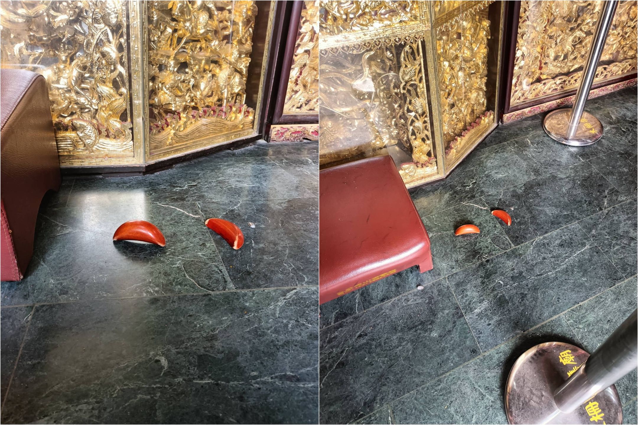 廟方指出,擲筊大多有3種情形出現,「聖杯」表示神明同意,「笑杯」表示狀況不明,可以重新再擲筊祈求,「無杯」則表示不宜行事,可以重新再擲筊請示,而「立筊」是比較特殊且難得的狀況,即木筊在擲出後以月牙形的兩支角穩穩地立在地面,由於機率很低,所以一般廟宇都視為神蹟,也被視為神明有話要對信眾說。