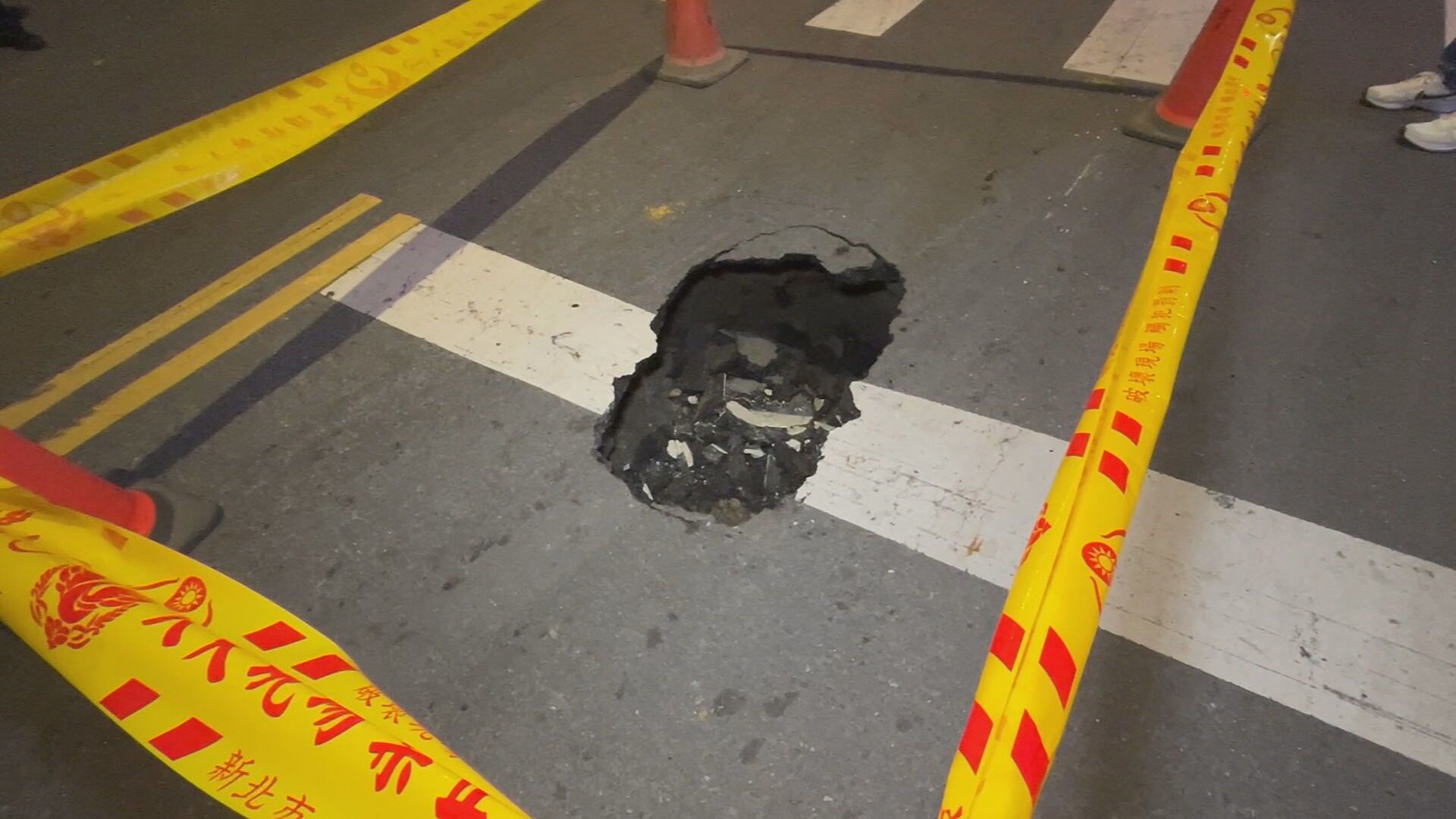 新北市土城區公所昨天(21日)深夜11點半接獲通報,轄內馬路出現一個長1.25公尺、寬0.6公尺、深度約0.6公尺的坑洞,公所趕緊派人搶修,趕在凌晨5點之前完成修復。
