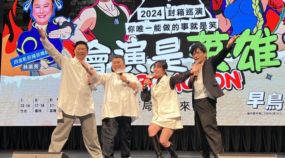 曾國城、林美秀、唐從聖、鄭茵聲今出席《會演是英雄》封箱巡演售票記者會,四大喜劇鬼才再聚首,現場笑料百出話中滿是梗,即將再次爆笑回歸!逢鄭茵聲3/28生日前夕,三位前輩特別準備法鬥造型蛋糕為她慶生,讓她又驚又喜,不過提到與「這群人」的團員互動關係,這次茵聲不忍了!直接喊話:「是看不起我們嗎?」