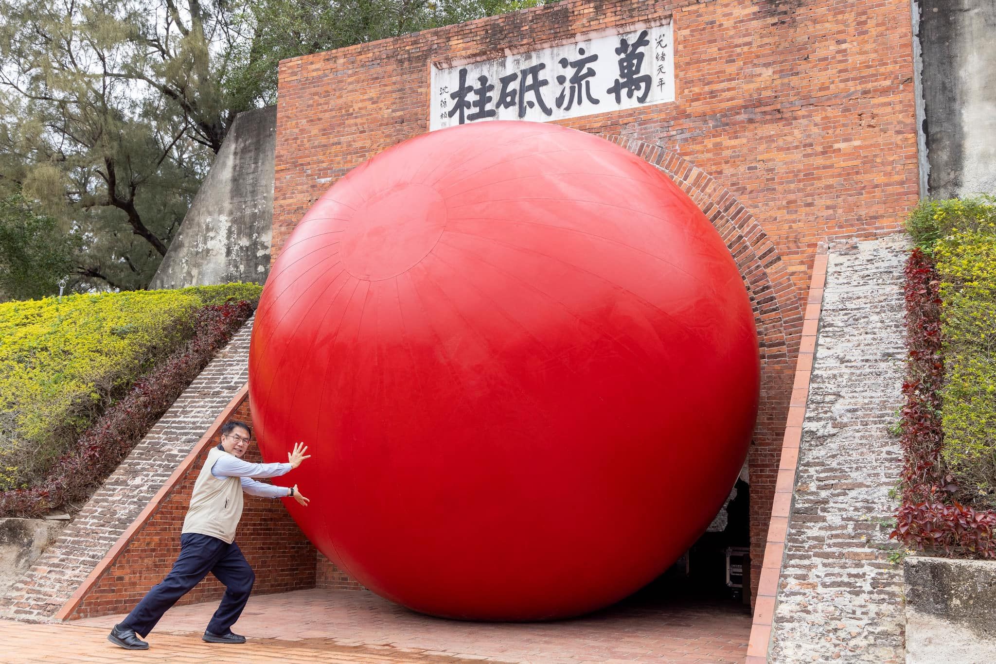 全球知名的街頭藝術行動「紅球計畫」於3月29日起,在台南展開為期10天快閃活動,台南市長黃偉哲28日提前曝光高4.5公尺、充氣後重達122公斤的巨大紅球真面目。