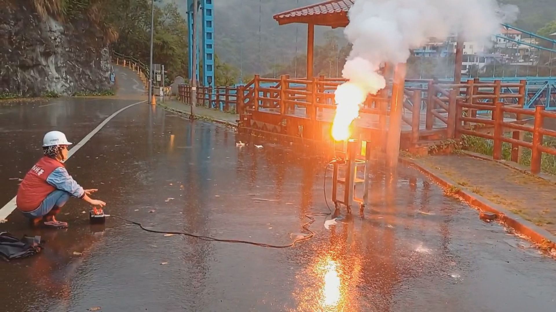 透過畫面可以看到,工程人員點燃增雨焰劑,進行人工增雨作業,就是希望讓石門水庫的蓄水量,回歸到正常水位。目前石門水庫蓄水率大約百分之29.4,水利署進行人工增雨作業,希望提高降雨量、增加水庫入流。