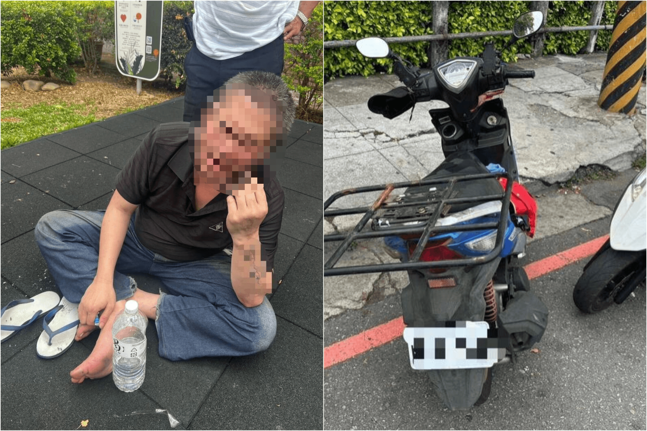 顏男偷走機車後,一路騎至17公里遠的台中榮總掛急診,看診後棄車再搭計程車返家,車資則由家人支付,警方到顏男住處找不到人,最後於上午10時許在仁愛路公園查獲顏男。