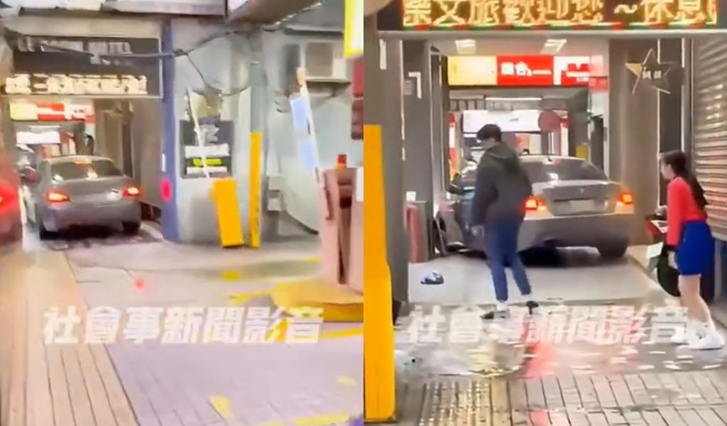 這起事件發生在桃園市桃園區復興路一處停車場,一輛灰色BMW轎車從停車場出來後,不知為何還沒到馬路就硬是右轉,不斷前後喬角度,在三進三退後擠進騎樓,且撞倒一台機車,駕駛並未下車查看,反而駛出騎樓揚長而去,超扯行徑讓路過民眾都相當傻眼。