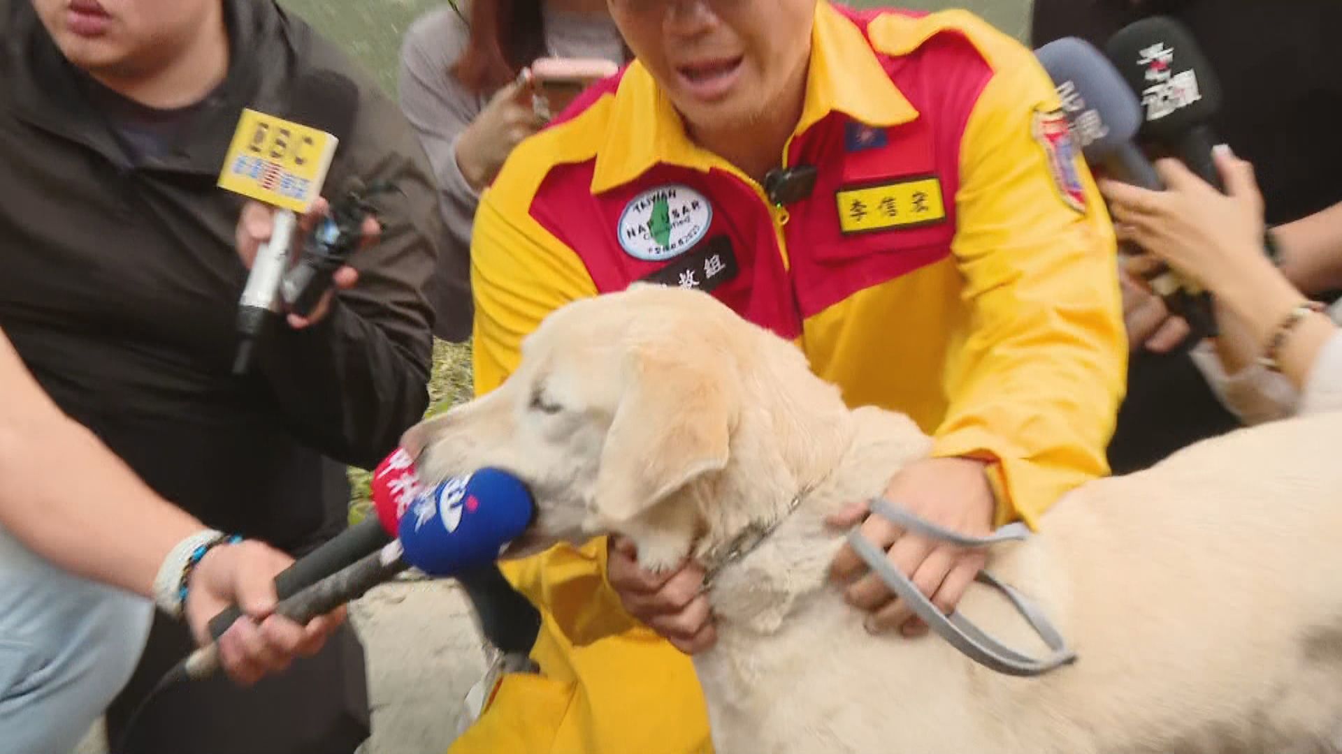 花蓮近海3日發生芮氏規模7.2強震,災情慘重,目前累計13人死亡、6人失聯,昨(6日)8歲的搜救犬Roger在砂卡礑步道,尋獲第3名罹難者。事後,領犬員李信宏帶著Roger一同受訪時,Roger卻不斷看向記者手中的麥克風,等到採訪結束,Roger立刻上前一口咬住麥克風,讓領犬員措手不及,逗趣反應萌翻現場所有人。事實上,Roger原本是緝毒犬,因個性過於活潑好動被淘汰,轉任搜救犬後屢立大功。