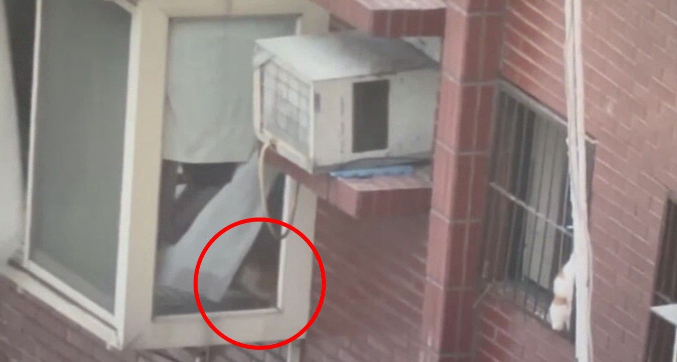 昨天(9日)天王星大樓進行拆除作業,意外發現一隻橘貓卡在7樓鐵窗,住在8樓的余姓女住戶激動指認,卡在鐵窗的貓咪正是自己的愛貓「橘子」,拆除作業因此暫停,消防人員出動雲梯車救援,下午4點58分成功救出橘子。
