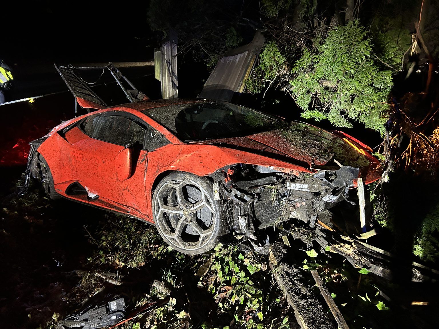 綜合《CBC》、《每日郵報》等外媒報導,西溫哥華警方於3月25日晚間11時許獲報,Cypress Bowl Road附近的1號高速公路上發生自撞車禍,警方到場發現一輛紅色的藍寶堅尼墜入溝渠裡且車頭全撞爛,卻不見駕駛與乘客。