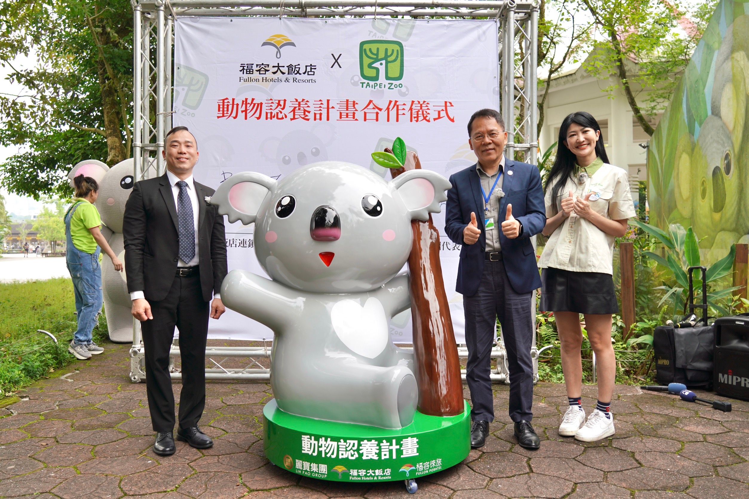 4月22日是世界地球日,福容大飯店在這天簽署共同參與臺北市立動物園「無尾熊動物認養計畫」,在觀光傳播局局長王秋冬的見證下,由臺北市立動物園園長諶亦聰與福容大飯店台北二館駐店總經理吳威德代表簽署。諶亦聰園長表示,今年為臺北動物園建園110年,樂見麗寶集團福容大飯店率觀光旅宿業先驅,投入支持野生動物保育教育推廣工作。吳威德駐店總經理致詞時也提到,福容大飯店致力於企業社會責任並將「環境、社會、治理(ESG)」理念融入日常經營,不僅在商業運營中追求效益,更積極投入結合集團資源,共同為無尾熊保育推動相關教育活動。同時攜手三貓(貓空、貓纜、大貓熊)結合貓空纜車及鄰近的深坑地區,邀請旅客來「玩三貓、住福容、遊深坑」參與地區觀光發展與產業共榮。