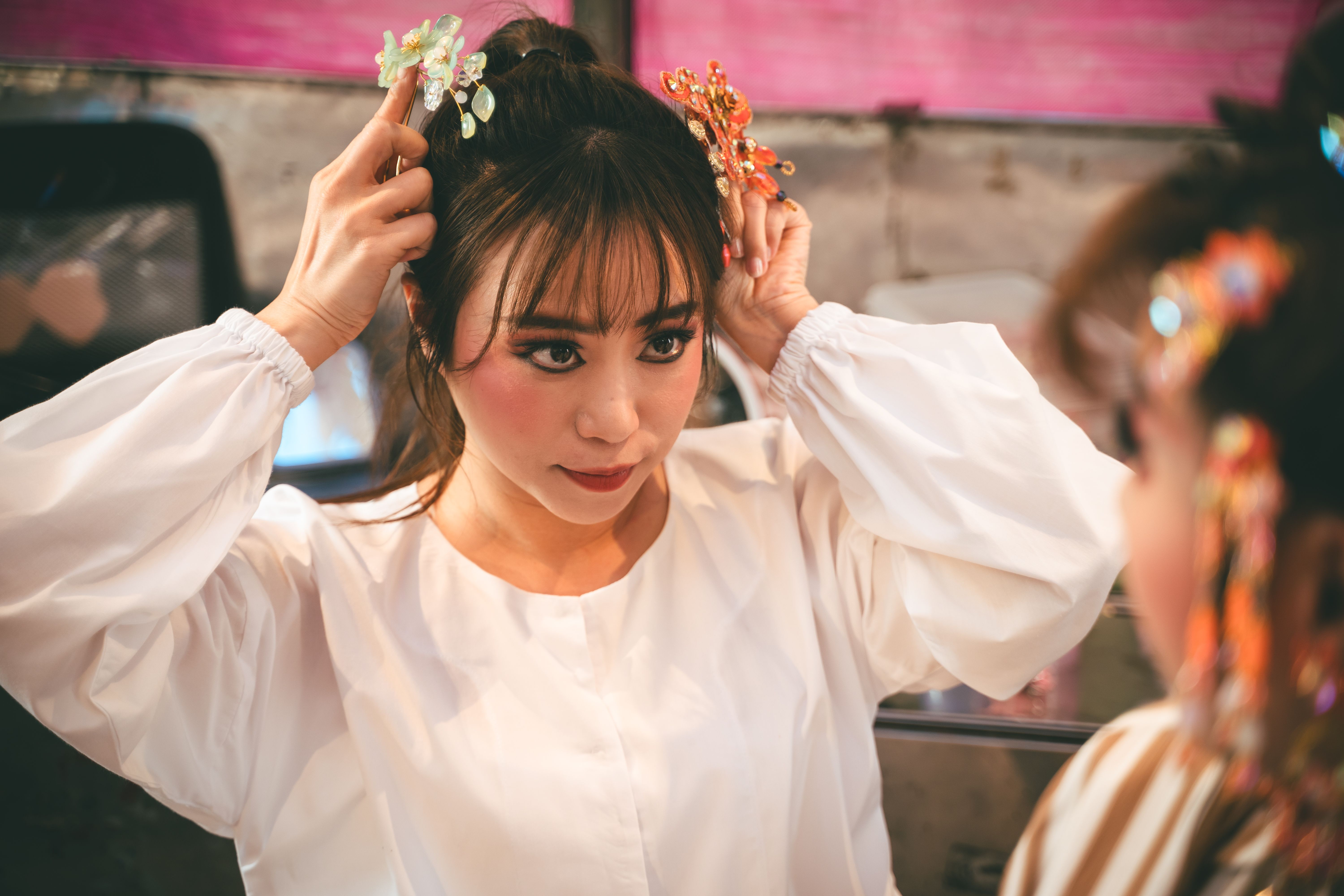 妹妹鄭茵聲絲毫不把林雨宣當姊姊看待,她鬼靈精怪地說:「我一點也不覺得雨宣是姊姊,因為她年紀比我小半年,戲一cut我們就像朋友一樣聊天,我跟現實中的姊姊也是這樣相處。」鄭茵聲戲裡開直播賣自製珠花,戲外的她是心靈手巧,不只會做指甲彩繪、用裁縫機,也喜歡畫畫。她自豪地說:「我跟映月真的滿像的,我還會做蛋糕呢!」