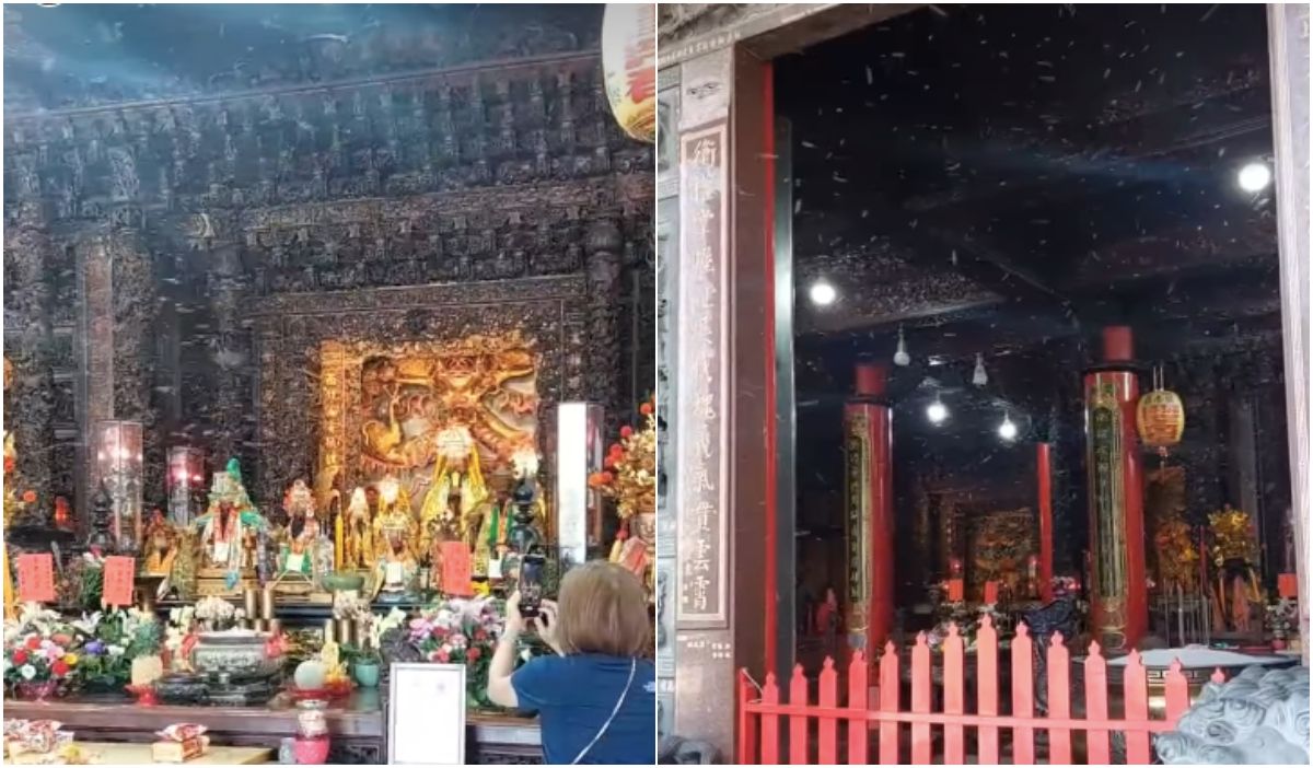 一名孫姓信眾昨(29日)將畫面拍下,並分享到臉書社團「麻豆人大集合」,他透露,蜂群約在下午3時許往正門飛入正殿內,並先在關聖帝君神像頭上盤旋,接著在正殿內狂飛亂舞,不過都沒攻擊現場人員,也沒在地上爬行,僅4隻蜜蜂「在中爐爬行出字」,據稱這現象是建廟以來首次發生。