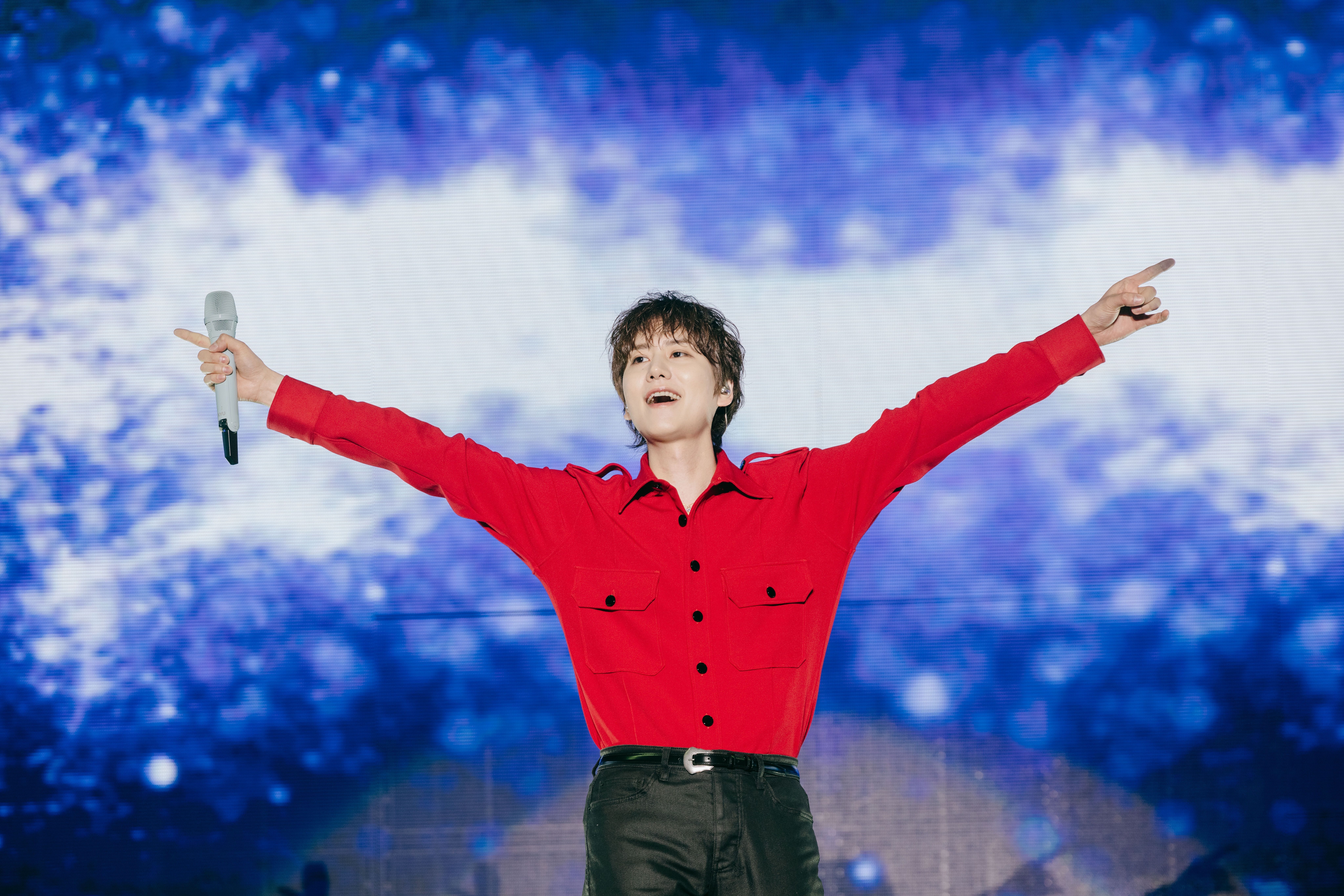 圭賢也幽默分享自己今天的TMI,「早上吃了永和豆漿,遇到穿著KYUpiter衣服的朋友,他把位子讓給我,以為他認出來了,一定是心想我今天要看演唱會的人在我面前,但是讓座之後,居然一眼都沒有再看我。」也順便在場跟讓座的粉絲喊話,引得全場粉絲大笑。除此之外,也開心表示「之前YT上傳了在台灣的VLOG影片,發現觀看數字非常漂亮。」