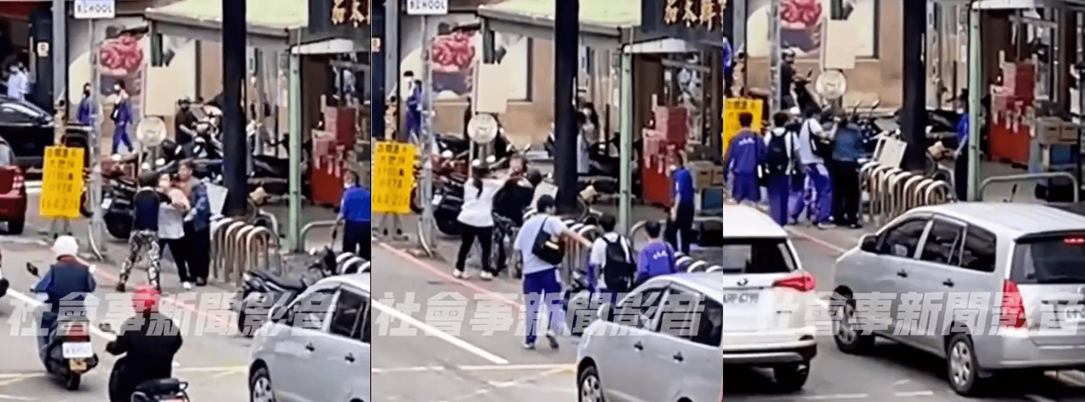 桃園市八德區永豐路上,在8日上午7時許發生一起疑因行車糾紛衍生的肢體衝突,2名男子在街邊大打出手,其中一人還戴著安全帽,一名女子居中勸架但拉不住,當時正值上班上課時間,一旁車來車往,還有很多穿制服的學生,一名男高中生徒步經過,見狀先是示意朋友幫他拿外套,上前幫忙拉開兩人,後乾脆將書包也遞給朋友,過程恰好被民眾拍下。