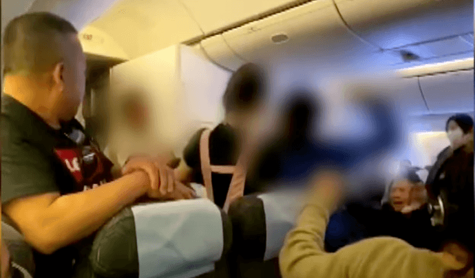 兩人原本只是口角衝突,結果演變成扭打事件,女性空服員見狀立刻拉開兩人,並請兩人保持冷靜,但兩人仍相當激動,空服員還被包夾,長榮表示,空服員當下立刻依作業程序,積極介入安撫旅客,當時鄰近座位旅客也給予協助,讓事件得到控制,並將兩名發生衝突的旅客安排到不同區域座位,以免後續又衝突。