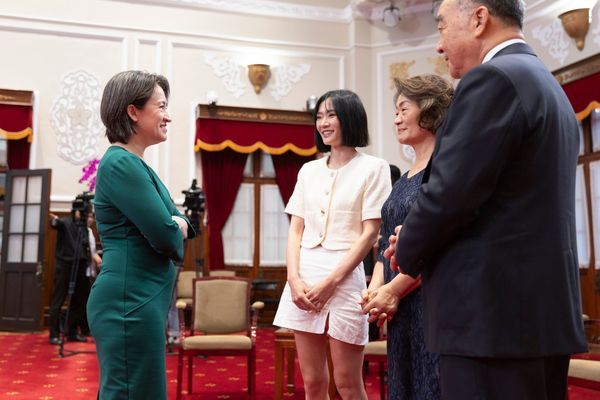 國防部長邱國正任職國安局的兒子邱晃年,日前涉及性交易且影片外流,遭懲處2大過並汰除。總統蔡英文今(13日)頒授勳章給行政院長陳建仁等13名政務官員,邱國正獲頒「二等景星勳章」,他除了帶老婆出席,外型亮麗的女兒邱子芸也罕見現身,見證父親光榮時刻。