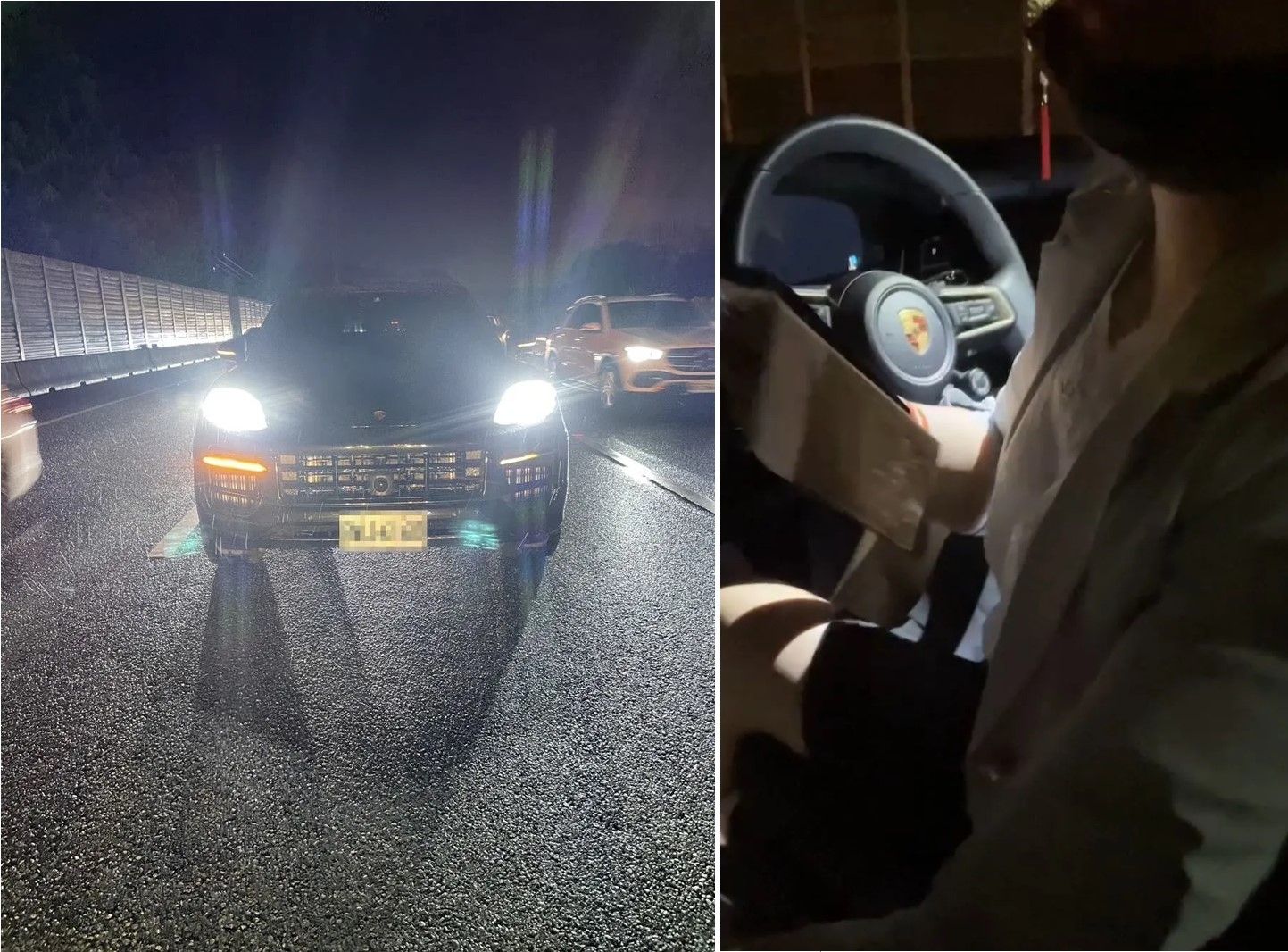 一輛保時捷卡在中線,後方大回堵,當高公局拖吊車到場,駕駛卻不願配合,堅稱已經報警,請警察幫忙帶油過來,見到國道警察來到,又向員警求情,「我加完油給你開單這樣好不好,你(指拖吊車)這樣子會把我車拖壞」,即便員警告知現在在國道上,他們在後方幫忙戒護,且大家為了協助她,處境都很危險,駕駛仍執拗地要警察幫她買油。